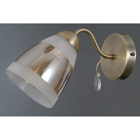 Металлическое основание светильника окрашено в черный цвет. Отдельные элементы основания потолочной люстры гальванизированы в цвет античной бронзы. Потолочная люстра декорирована выдувными вручную стеклянными плафонами, гальванизированными в цвет шампань. У основания плафоны окрашены в черный цвет.