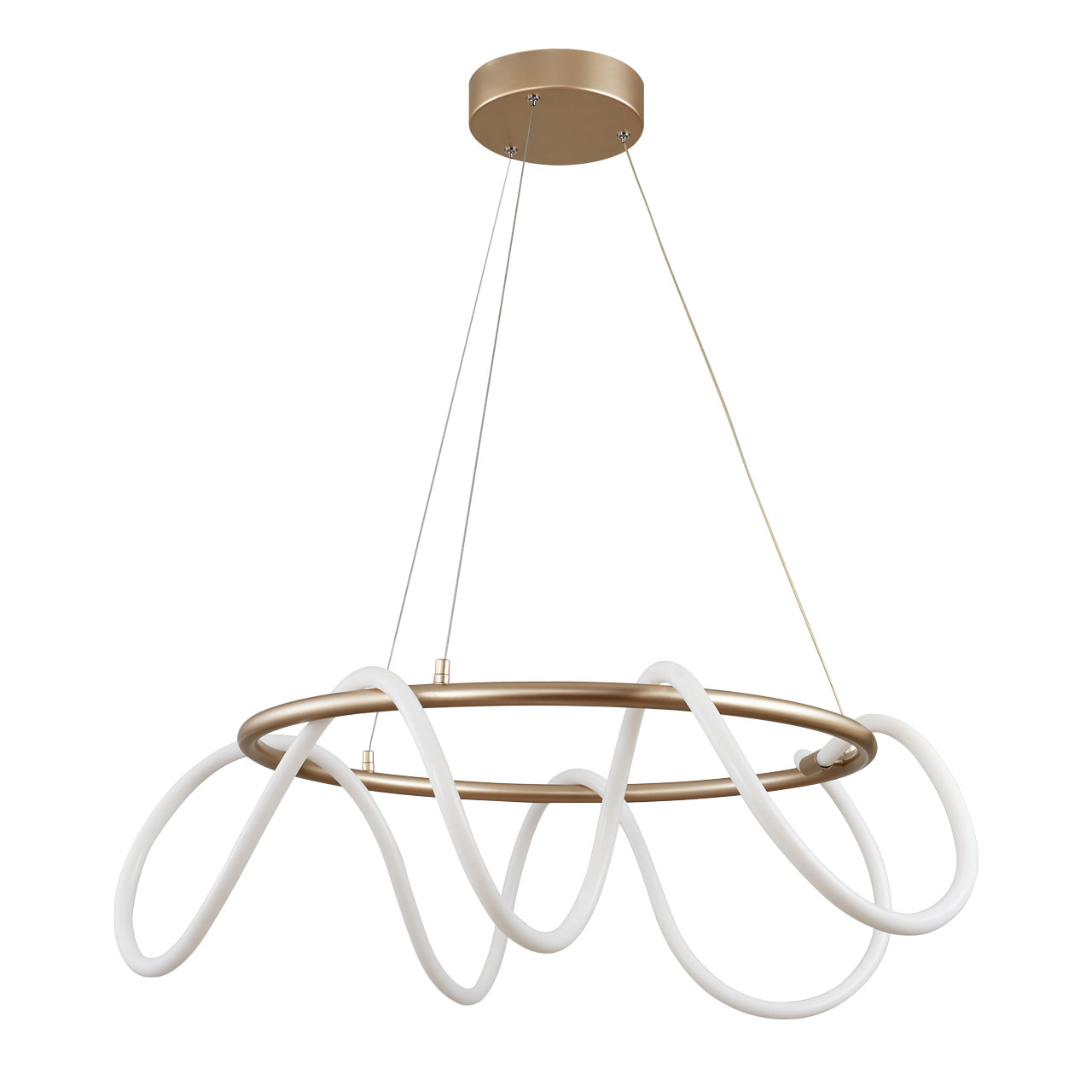 Металлическое основание светильника окрашено в цвет перламутрового золота, матировано. Гибкий плафон выполнен из белого матового силикона.