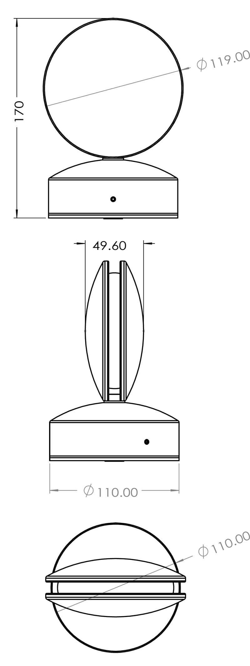 - Диаметр: 119 мм (11.9 см)
