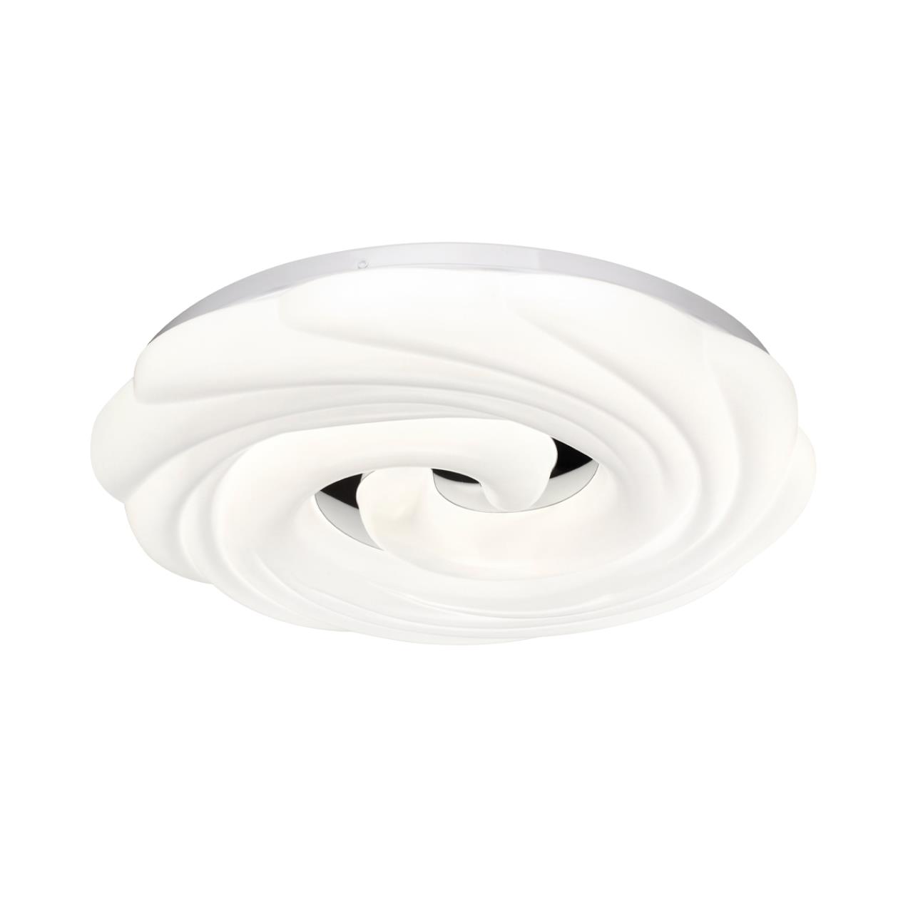 Светильник 7675/DL линии AGAP состоит из металлического основания (базы) и пластикового рассеивателя. Материал рассеивателя - высококачественный пластик марки PMMA 2.0 белого цвета с матовой поверхностью и рельефной структурой. Пластик обеспечивает светильнику равномерное рассеивание и хорошее светопропускание. Форма плафона: круглая, декорирована центральной вставкой из пластика, цвет серебро. Степень защиты IP43 позволяет использовать светильник в определенных зонах влажных помещений. В комплект входит заменяемый LED модуль с линзами, мощностью 48Вт, которая соответствует лампе накаливания 440Вт. А также пульт ДУ (с креплением на стену), с помощью которого осуществляется плавное изменение цветовой температуры 3000-6000К, изменение яркости, переход в режим переключения теплого/белого/холодного/ночного света. Светильник имеет функцию "память".