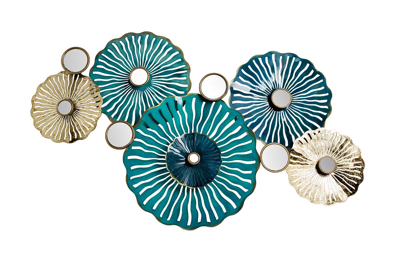 Оригинальное настенное панно из стилизованных цветов лазурного и золотого цвета превращает комнату в тропический сад. Декоративные зеркальные вставки наполняют помещение рассыпью солнечных зайчиков в любое время года, поднимая настроение. Объемное панно у...