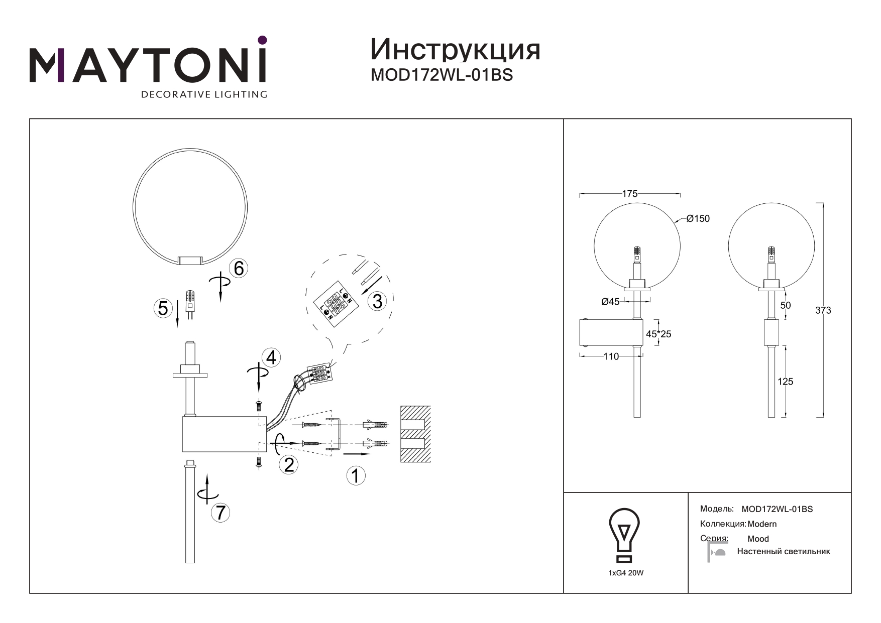 Бра Maytoni Mood MOD172WL-01BS в Ялте