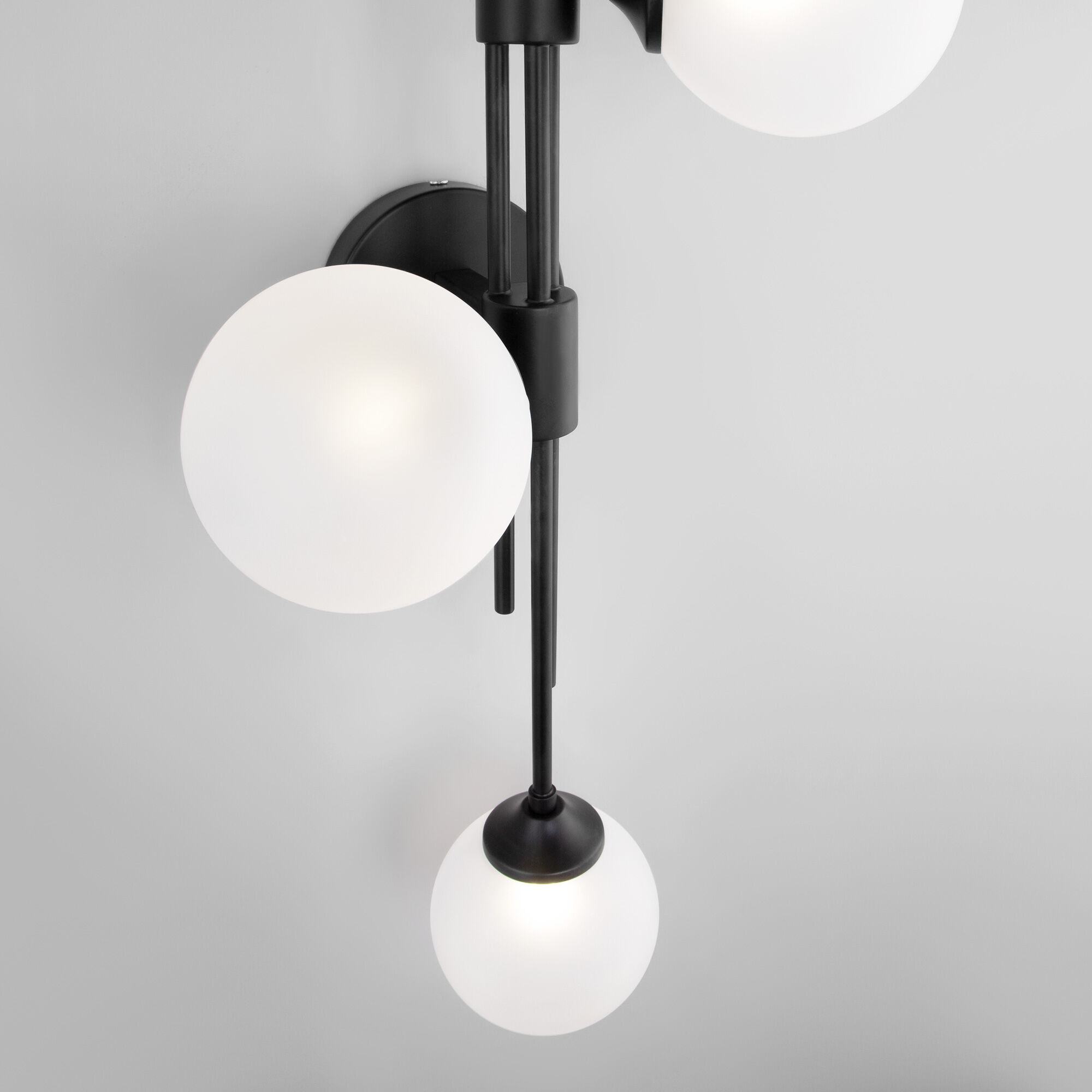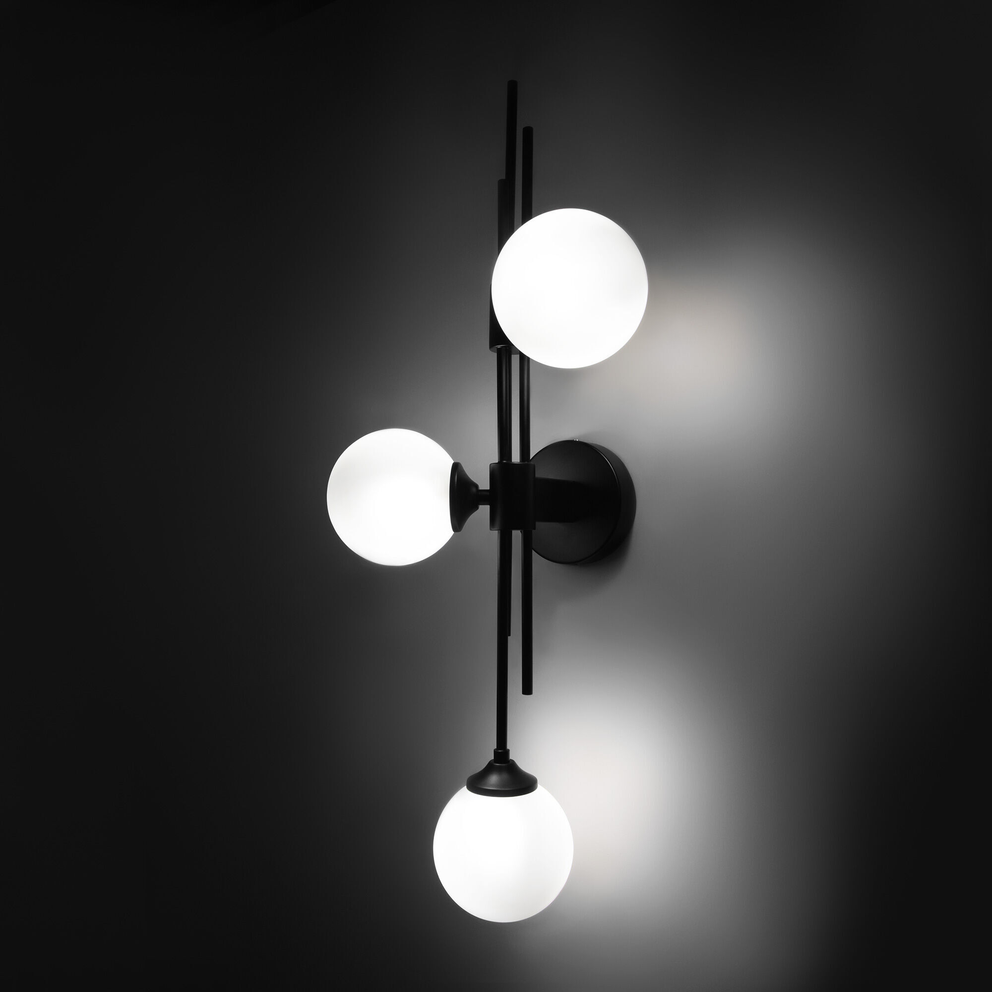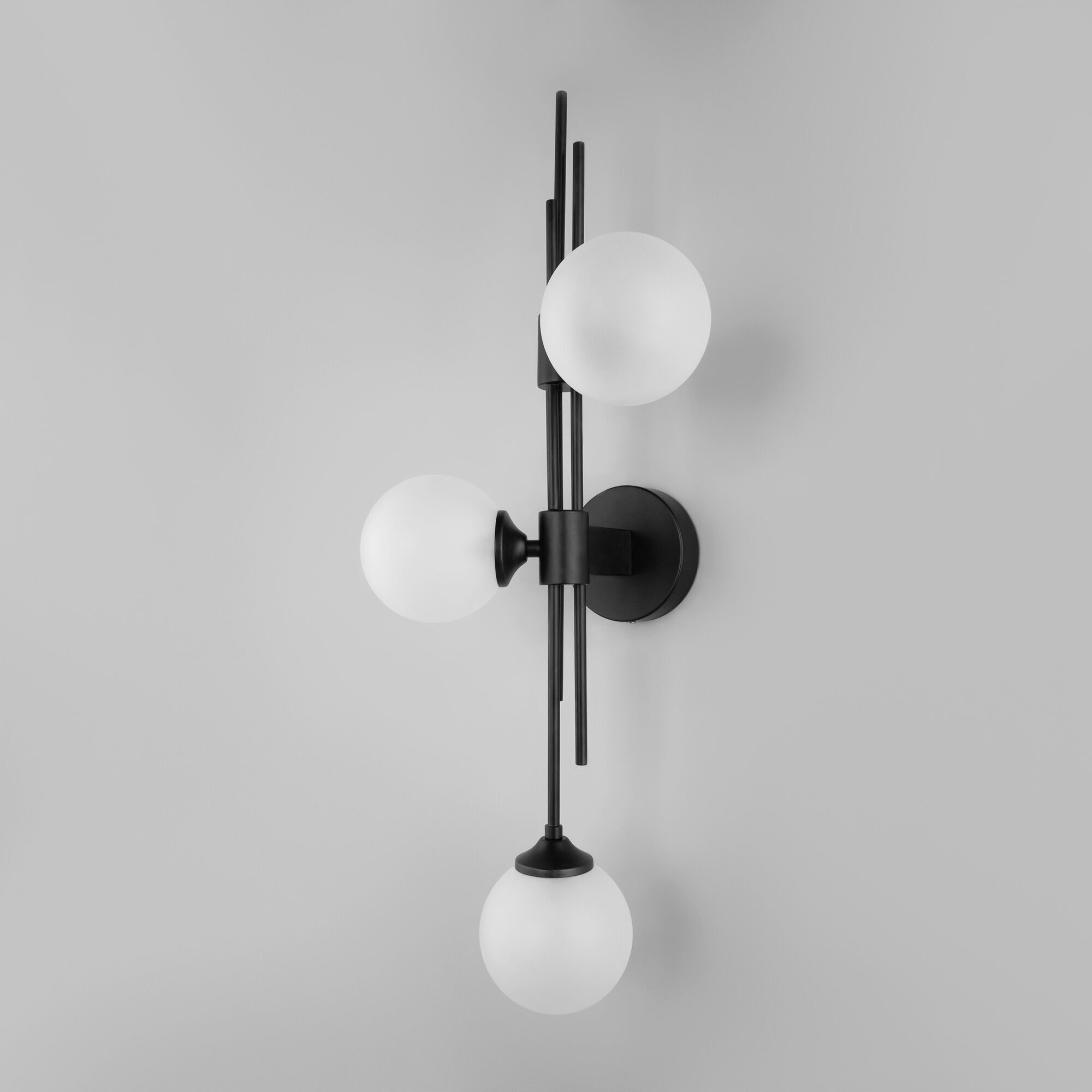 Настенный светильник в современном стиле 50383/3 черный создаст качественное дополнительное освещение и станет эффектным дополнением к основному источнику света. Благодаря белым стекляным плафонам бра создает мягкое рассеянное свечение, подходящее для комфортного чтения книг в вечернее время. В качестве источника света используются сменные лампы с цоколем G9. Патрон рассчитан на максимальную мощность ламп накаливания 40 Вт.