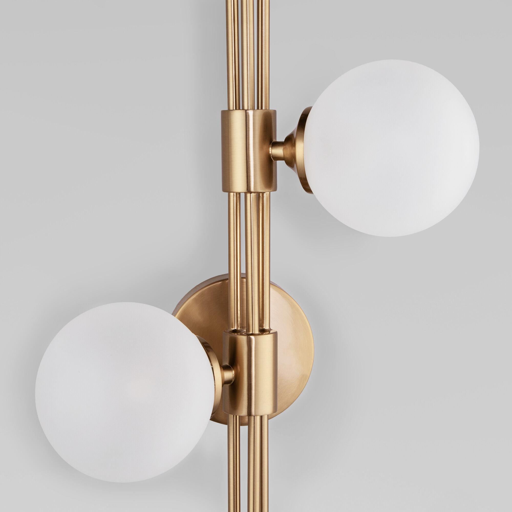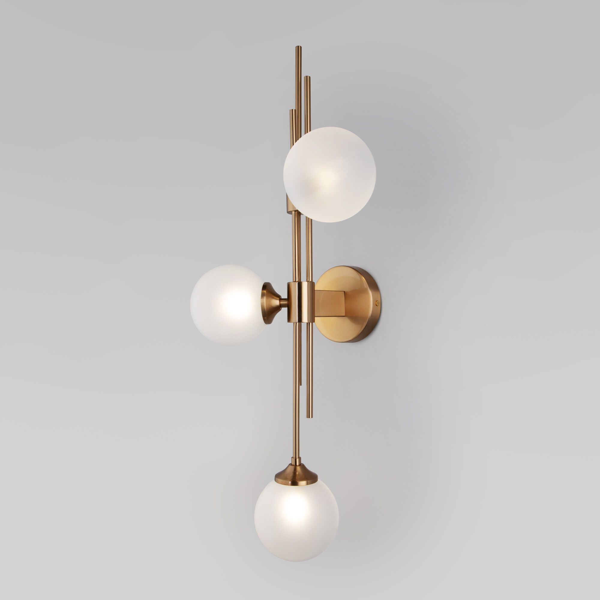 Настенный светильник в современном стиле 50383/3 латунь создаст качественное дополнительное освещение и станет эффектным дополнением к основному источнику света. Благодаря белым стекляным плафонам бра создает мягкое рассеянное свечение, подходящее для комфортного чтения книг в вечернее время. В качестве источника света используются сменные лампы с цоколем G9. Патрон рассчитан на максимальную мощность ламп накаливания 40 Вт.