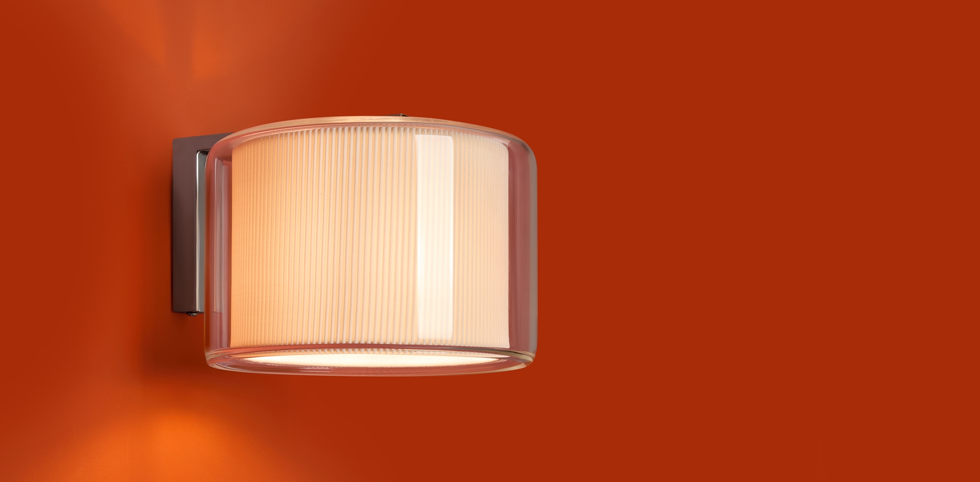 Сочетание стекла и тканевой плиссировки для мягкого рассеянного света. Лампы E27 (в комлекте). Особенность плафонов - их многослойность. В серии представлены подвесной, потолочные и настенный светильники.