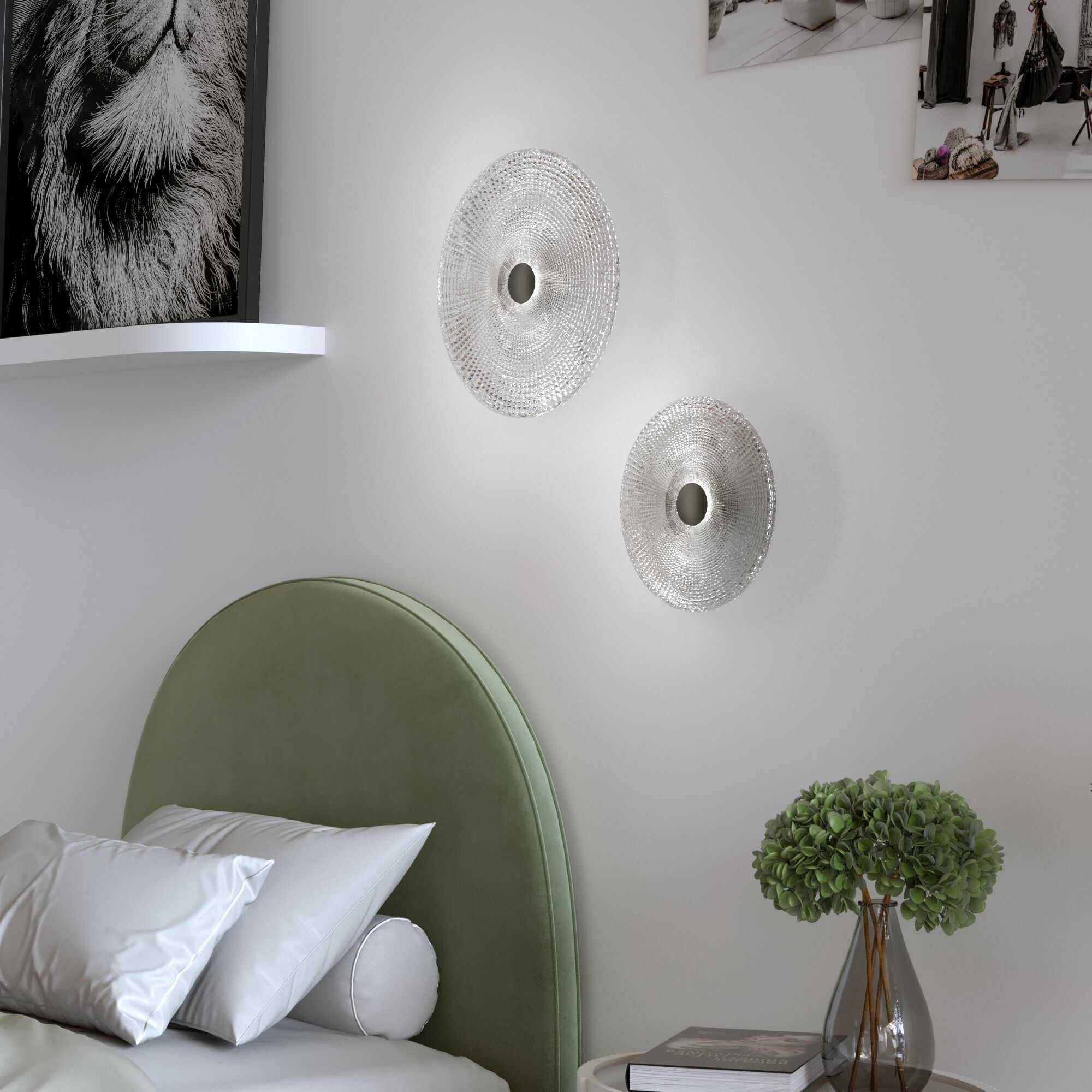 Фактурная «баска», обнимающая молочные плафоны, вызывает ассоциации с плиссированными юбками. Фешенебельная композиция моделей создает эффект визуальной легкости в интерьере, мягко рассеивая свет.