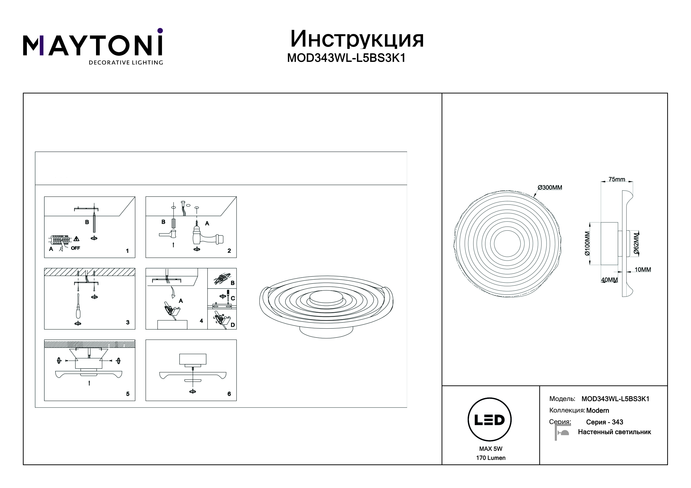 Данную модель MOD343WL-L5BS3K1 с быстрой доставкой спешите купить по цене 14 070 ₽ в магазине 220svet.ru