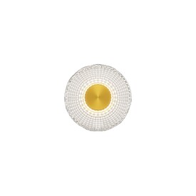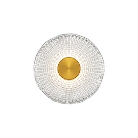 Металлическая арматура, цвет - латунь. Декоративные плафоны из литого стекла. Они рассеивают свет и дают легкие блики на стенах. Стекло плафонов может быть прозрачным или тонированным с паттерном молочного оттенка. Встроенный LED-источник света имеет цветовую температуру 3000 К, угол рассеивания — 120 градусов.