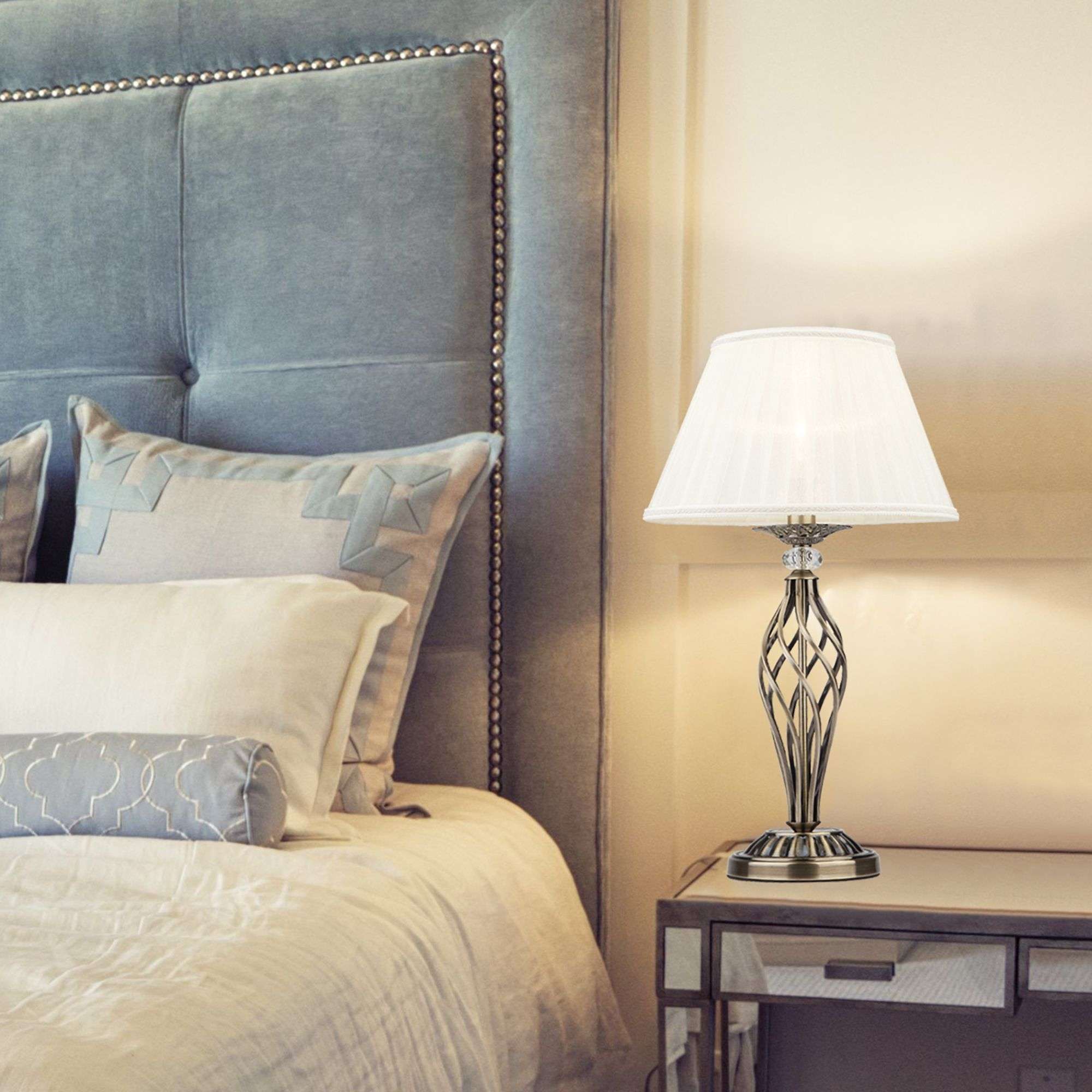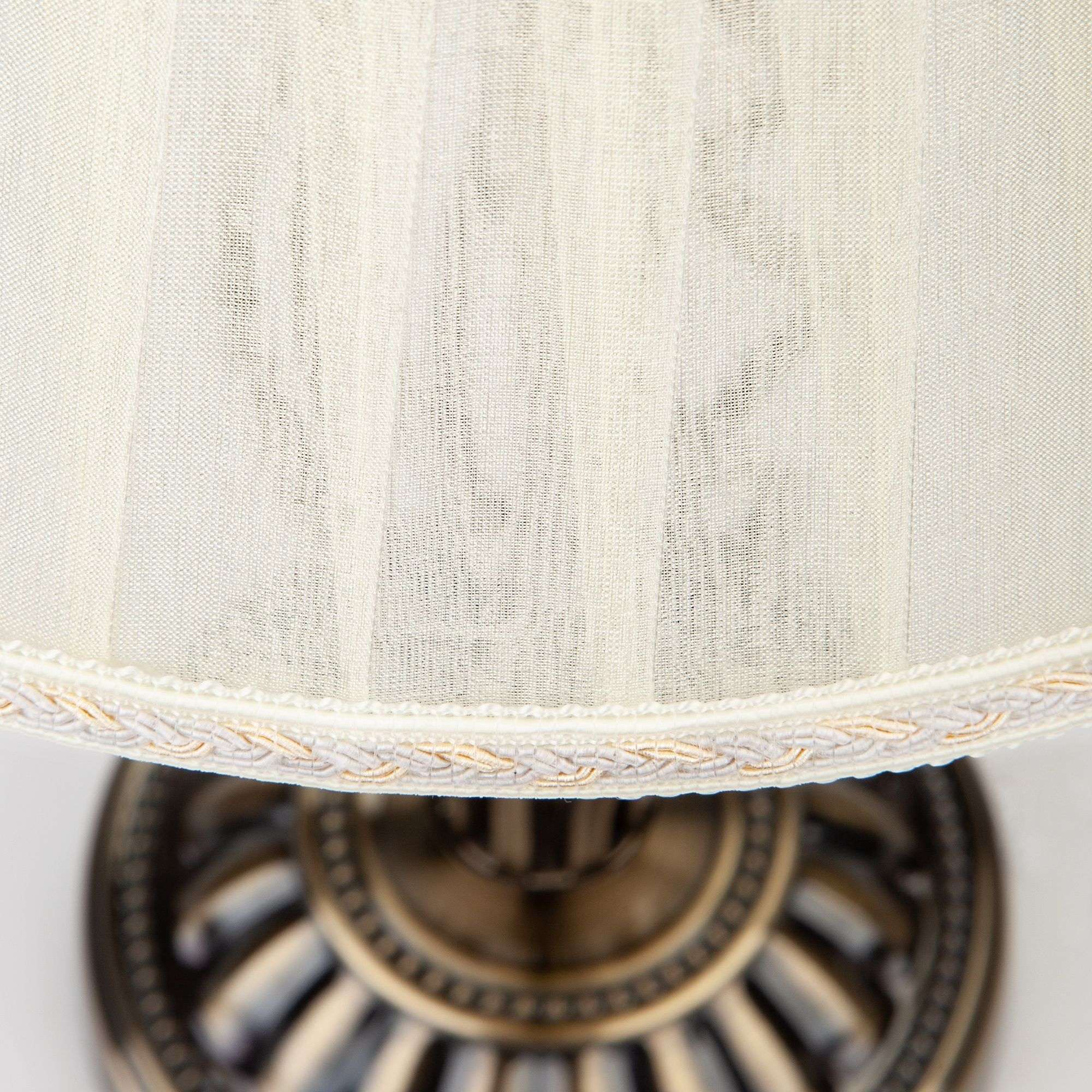 Благодаря бежевому тканевому абажуру настольная лампа создает мягкое рассеянное свечение, подходящее для комфортного чтения книг в вечернее время. Прочный металлический корпус светильника устойчив к механическим воздействиям, а защитное покрытие обеспечивает надежную электроизоляцию и презентабельный внешний вид.