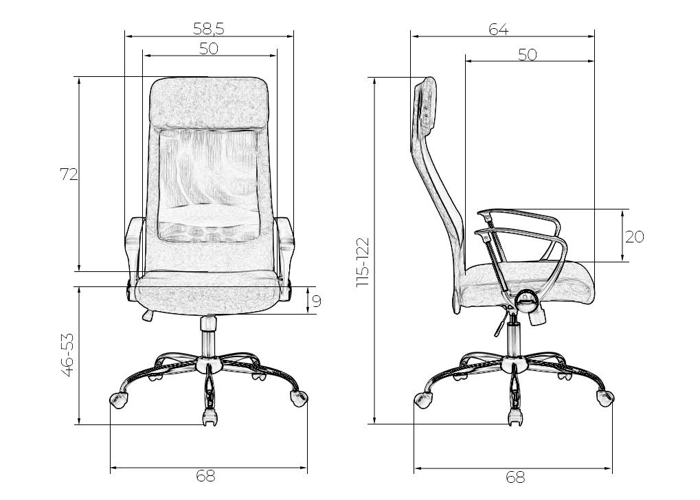 - Глубина сиденья: 500 мм