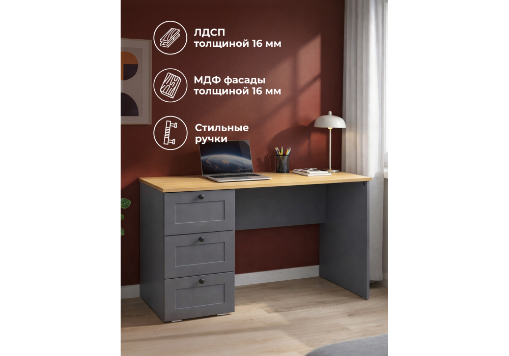 Письменный стол Woodville Опра серый графит / дуб золотой craft 676811 в Ялте
