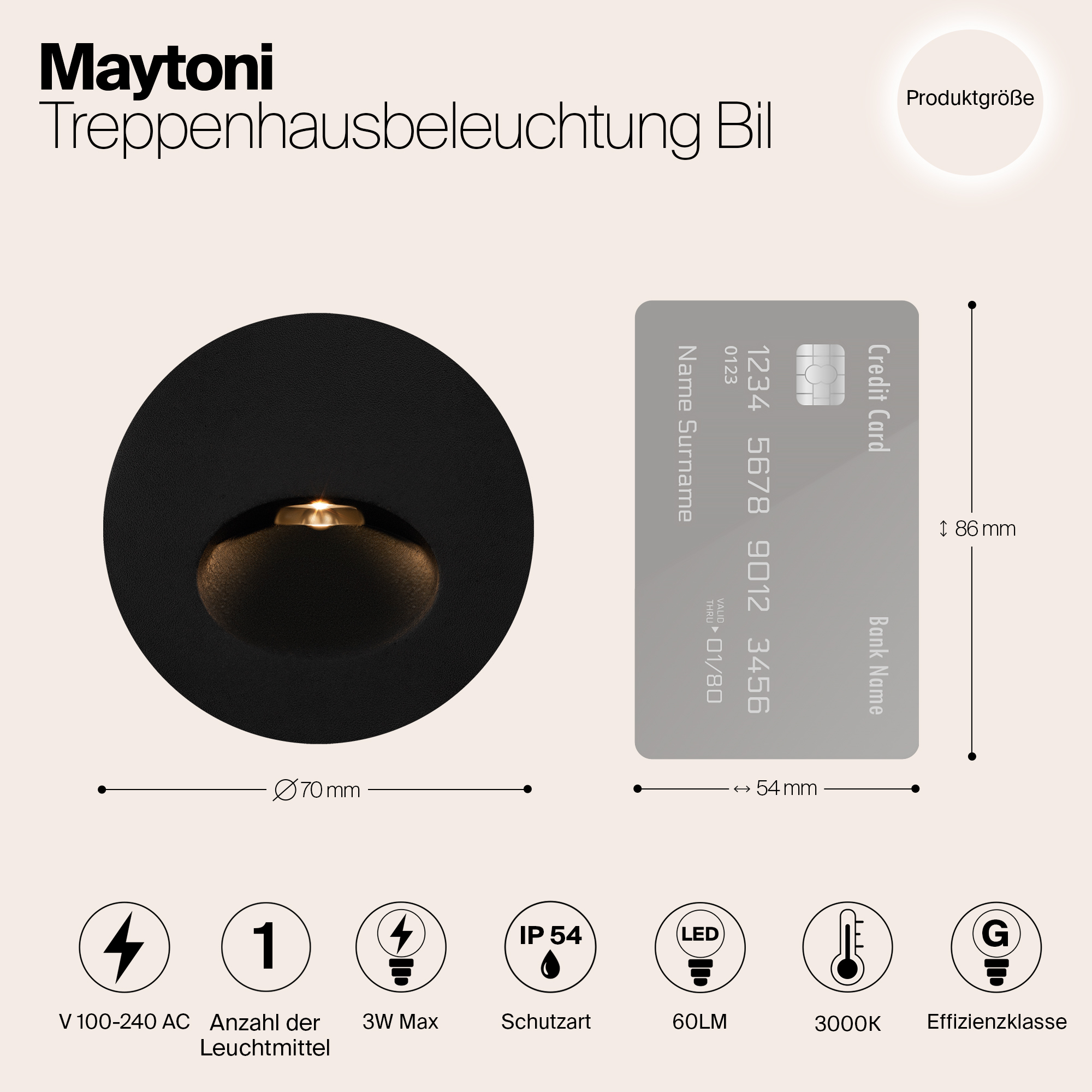 Мощность связана с величиной светового потока люмен (Lm), и от неё зависит яркостью лампы. - Общая мощность: 3 W