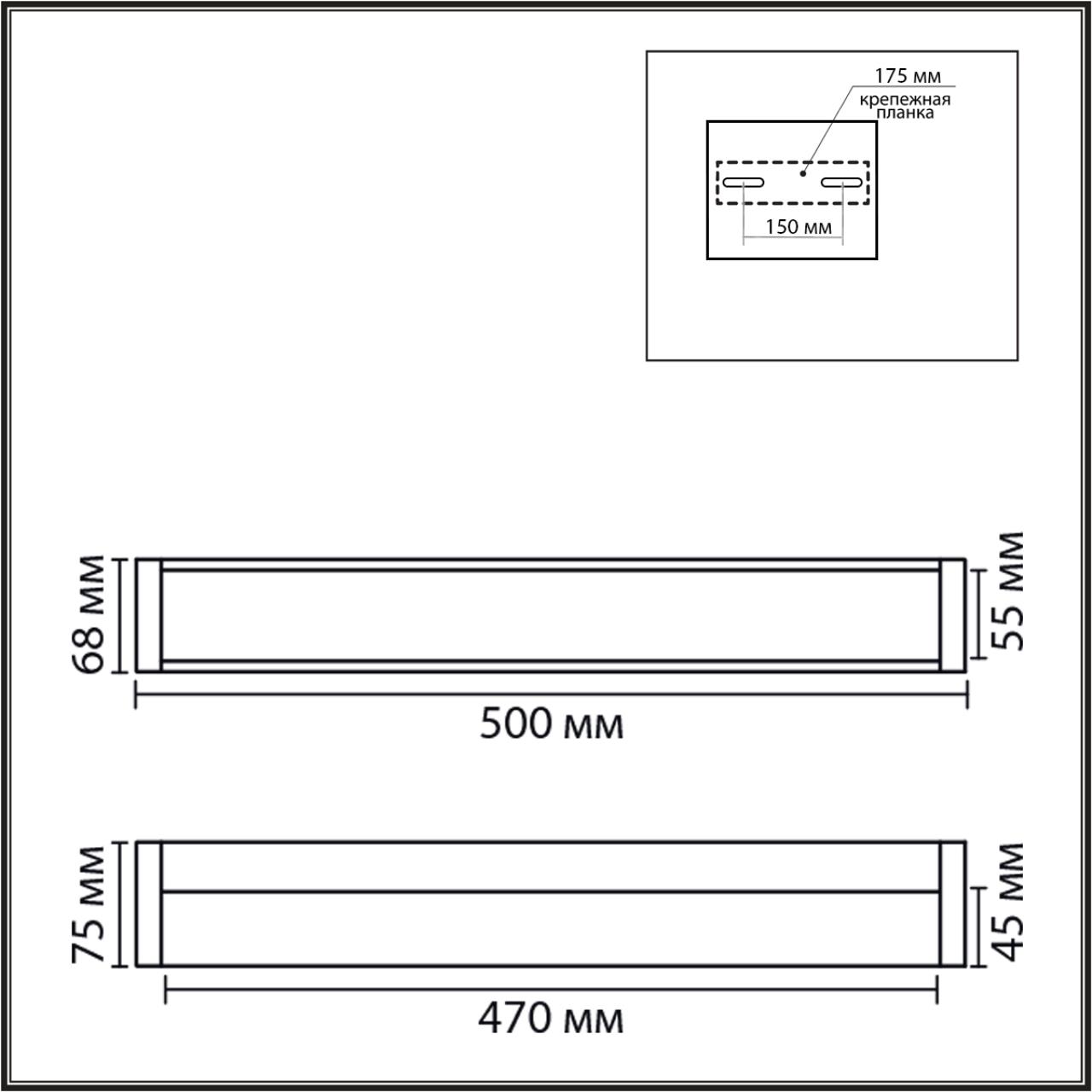 - Форма плафона: Прямоугольный