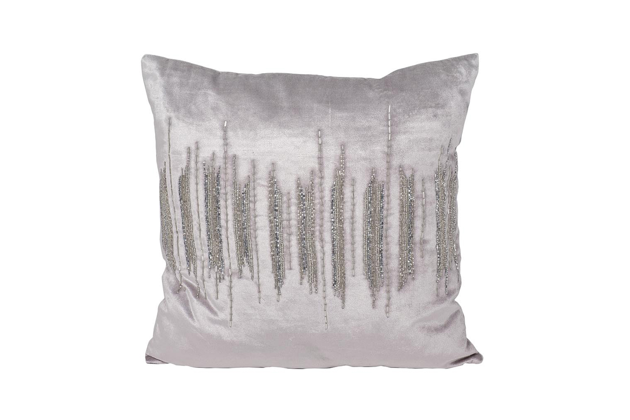 Декоративные подушки в интерьере гостиной обладают настоящей магией – они способны подчеркнуть достоинства интерьера и даже преобразить его без существенных изменений. У модели мягкая бархатистая поверхность, насыщенный серый цвет, упругий наполнитель. А еще на изделии – узор в виде прямых линий, вышитых бисером. Параллельные линии – стильный лаконичный орнамент, уместный в любом современном интерьере. С его помощью можно зрительно увеличить помещение. Задумываясь, где купить декоративные подушки, обратите внимание на наш каталог, в котором богатый выбор премиального текстиля для дома