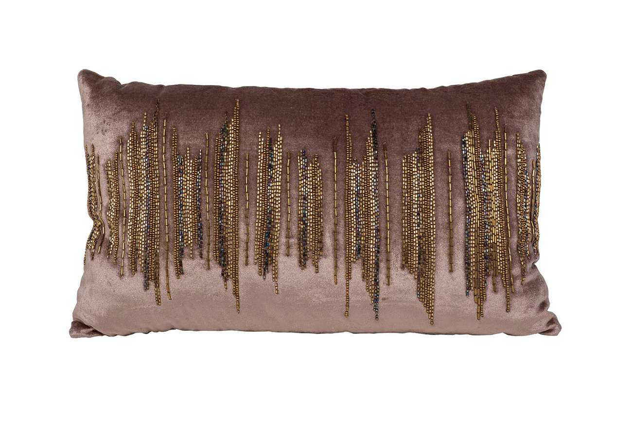 Люди с утонченным вкусом ищут возможность сделать интерьер более изысканным. В таких случаях на помощь приходят интерьерные детали, и декоративные подушки – одно из лучший решений. Декоративная подушка 30х50 представляет собой изделие классической формы благородного бежевого цвета. На этом теплом фоне вышиты вертикальные линии различной длины из бисера разной фактуры. В результате создан настоящий шедевр с оригинальным узором, притягивающий взгляды.