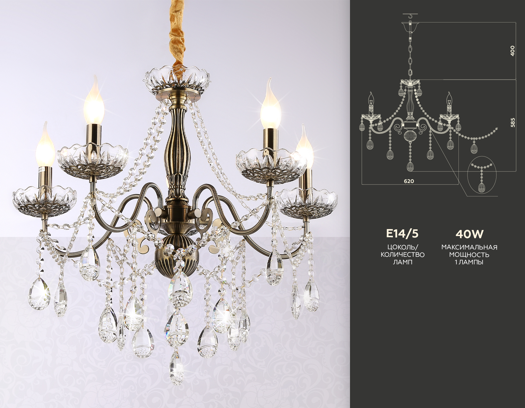- Количество ламп: 5 шт