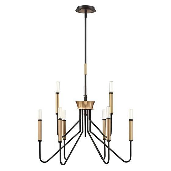 Люстры выполнены из качественных материалов - металла и алюминия, что обеспечивает долгий срок службы изделия. Цветовая гамма в черном и золотом оттенках придаст вашему интерьеру изысканность и стиль. 8 светодиодных лампочек с цоколем Е14 обеспечат яркое и комфортное освещение в вашем помещении. Высота данной модели составляет 1210 мм, а диаметр 750 мм.