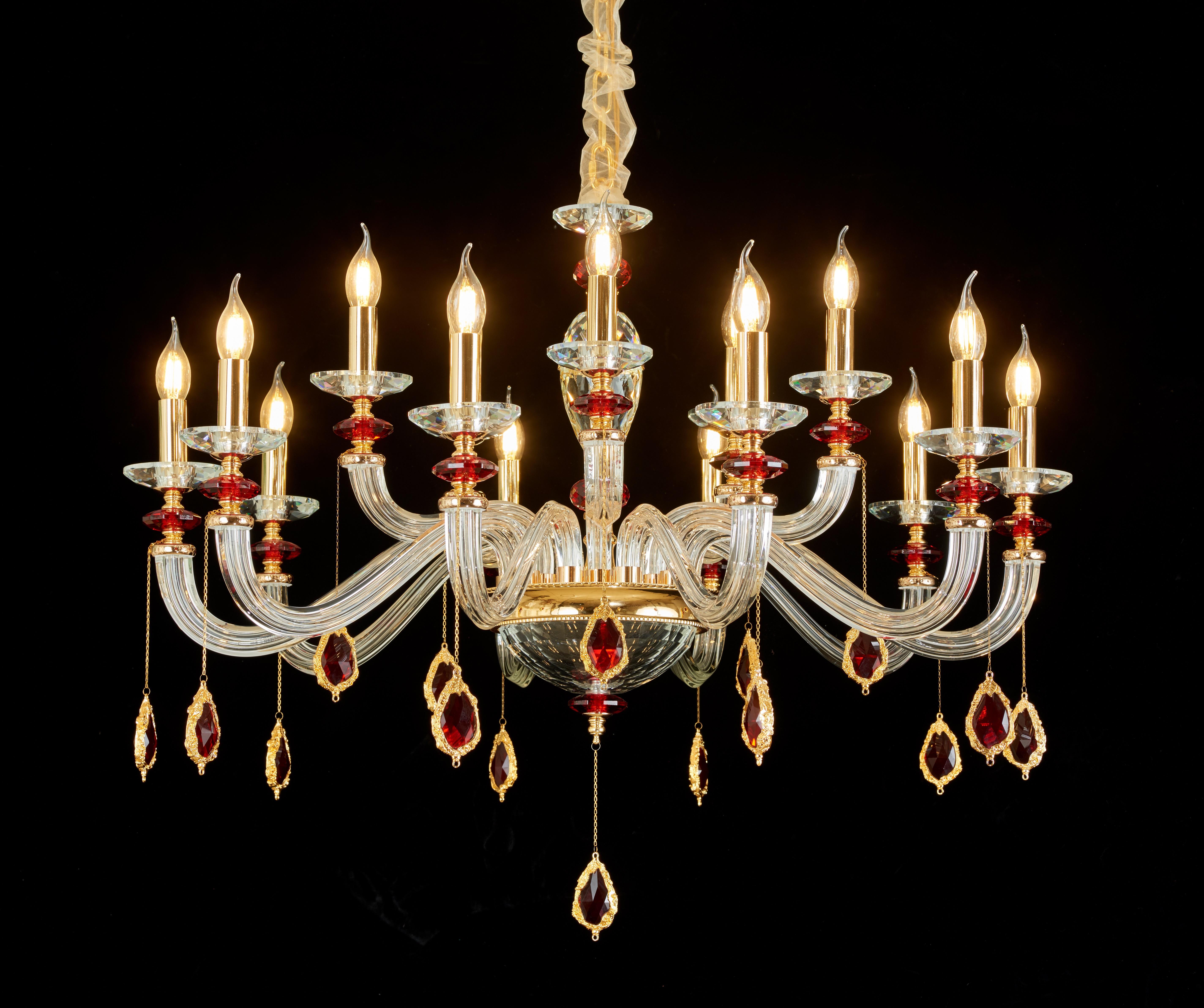 Подвесная люстра F2624-11 – это идеальное решение для тех, кто ценит классический стиль и элегантность в интерьере. Сочетание алюминия и хрусталя придает изделию шикарный вид, а выполнение в красном и золотом цвете добавляет атмосферы роскоши.