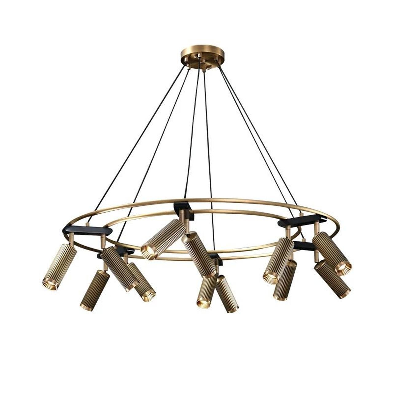 Детали дизайна тщательно продуманы: железные и алюминиевые элементы, окрашенные в оттенки меди и золота, прекрасно гармонируют с плафонами из алюминия, акцентируя медный оттенок. Внушительные размеры люстры — высота в 2000 мм и ширина 1000 мм — превращают её в впечатляющий акцент, преобразующий любое помещение, вне зависимости от того, выполнено ли оно в современном или классическом стиле. Каждая деталь демонстрирует мастерство и безупречное качество, делая этот осветительный прибор не только источником света, но и настоящим произведением искусства.