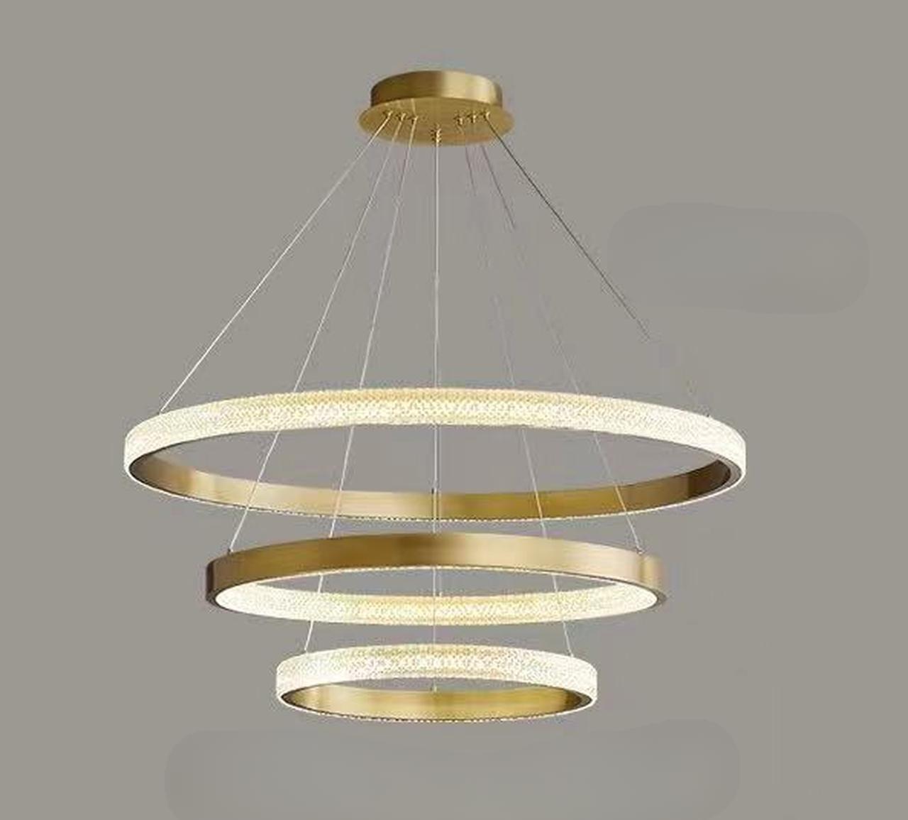 Высота 1200 см и выразительные диаметры 400, 600 и 800 мм делают ее центром притяжения в любом интерьере. Арматура из железа, также окрашенная в золото, добавляет ей стойкости и надежности. Плафоны из акрилового покрытия, окрашенные в тот же роскошный оттенок, плавно растворяются в окружении, создавая гармоничное общее впечатление.