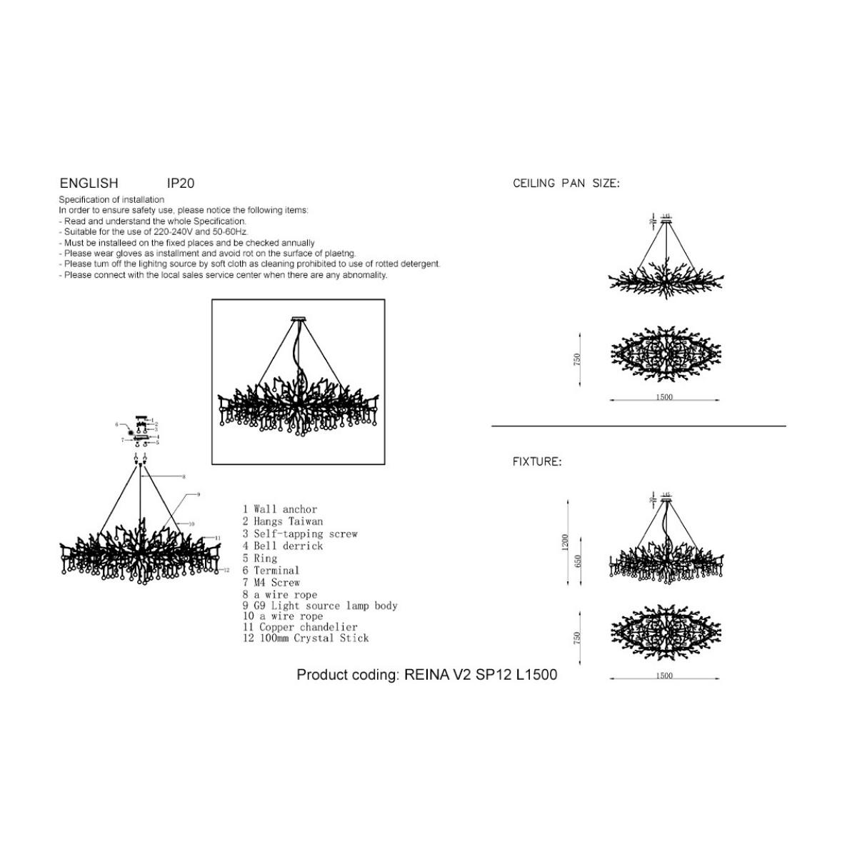 Подвесная люстра Crystal Lux REINA V2 SP12 L1500 SILVER PATINA в Ялте
