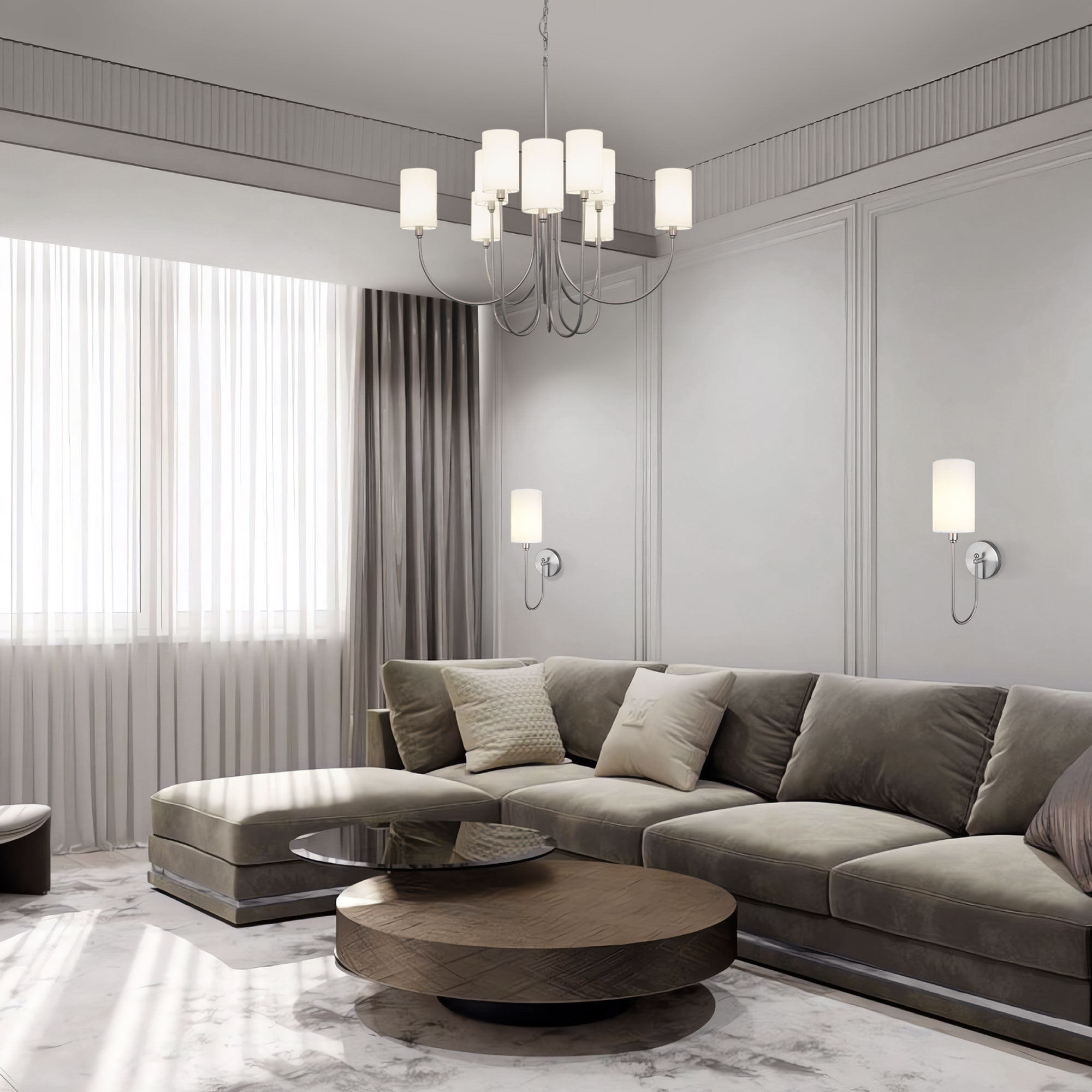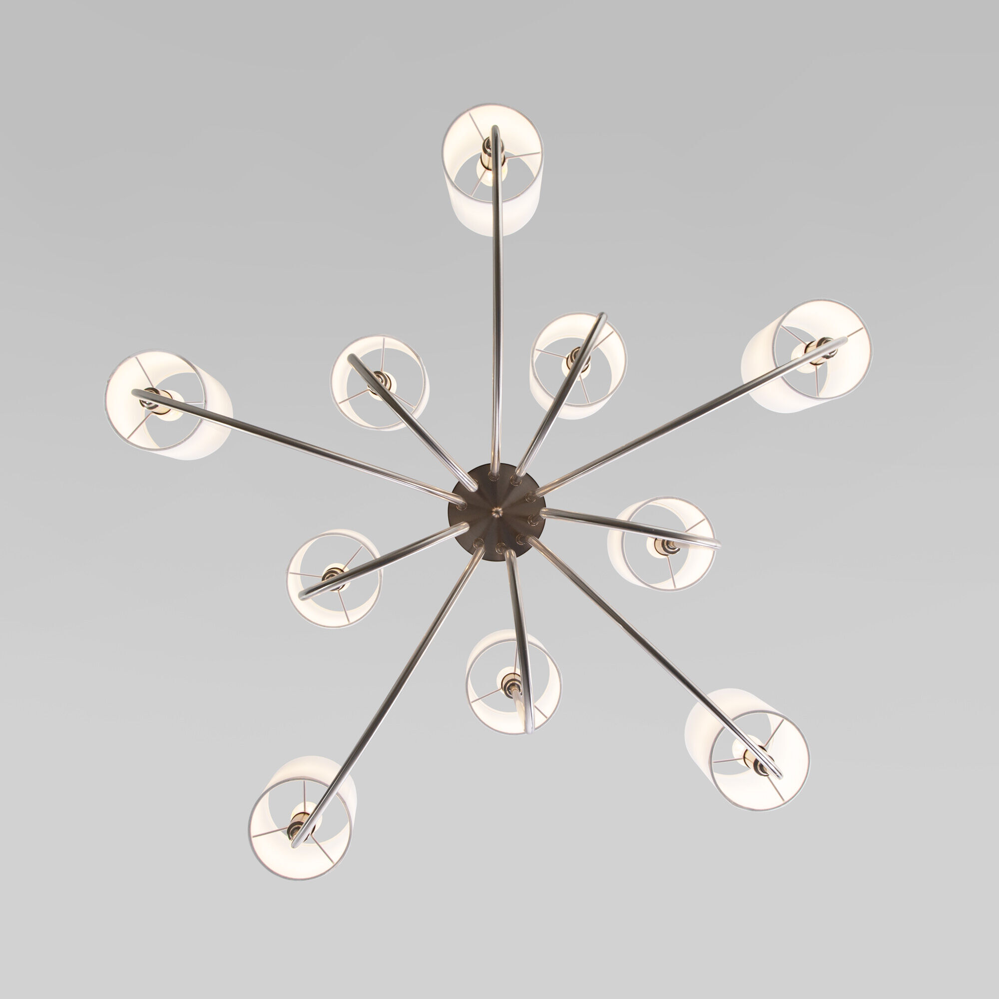 Подвесная люстра с тканевыми абажурами 60164/10 никель предназначена для создания основного освещения в современных и классических интерьерах, подходит для различных типов помещений: гостиная, спальня; и рассчитана на площадь освещения 18 м².