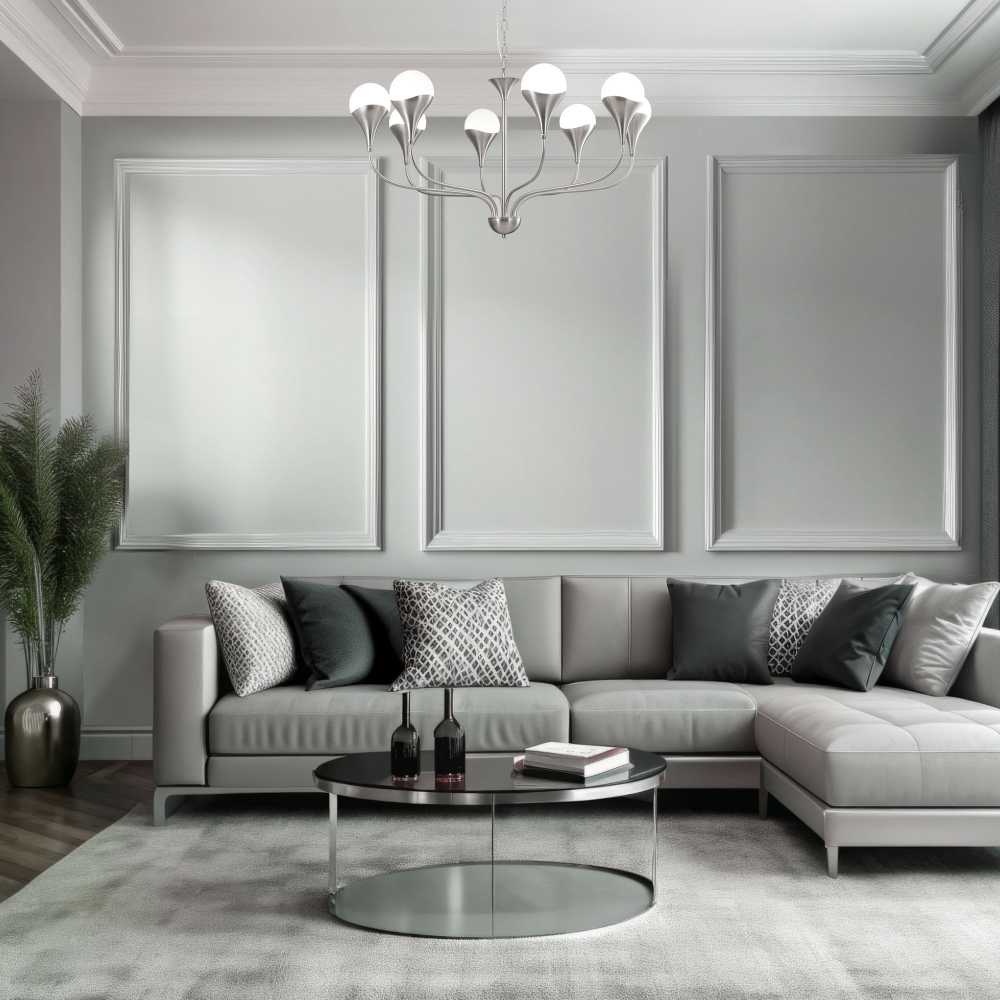 Модели представлены подвесными светильниками округлой формы, что добавляет интерьеру визуальной мягкости, а также потолочными решениями со строгими линиями основания, которые создают баланс.