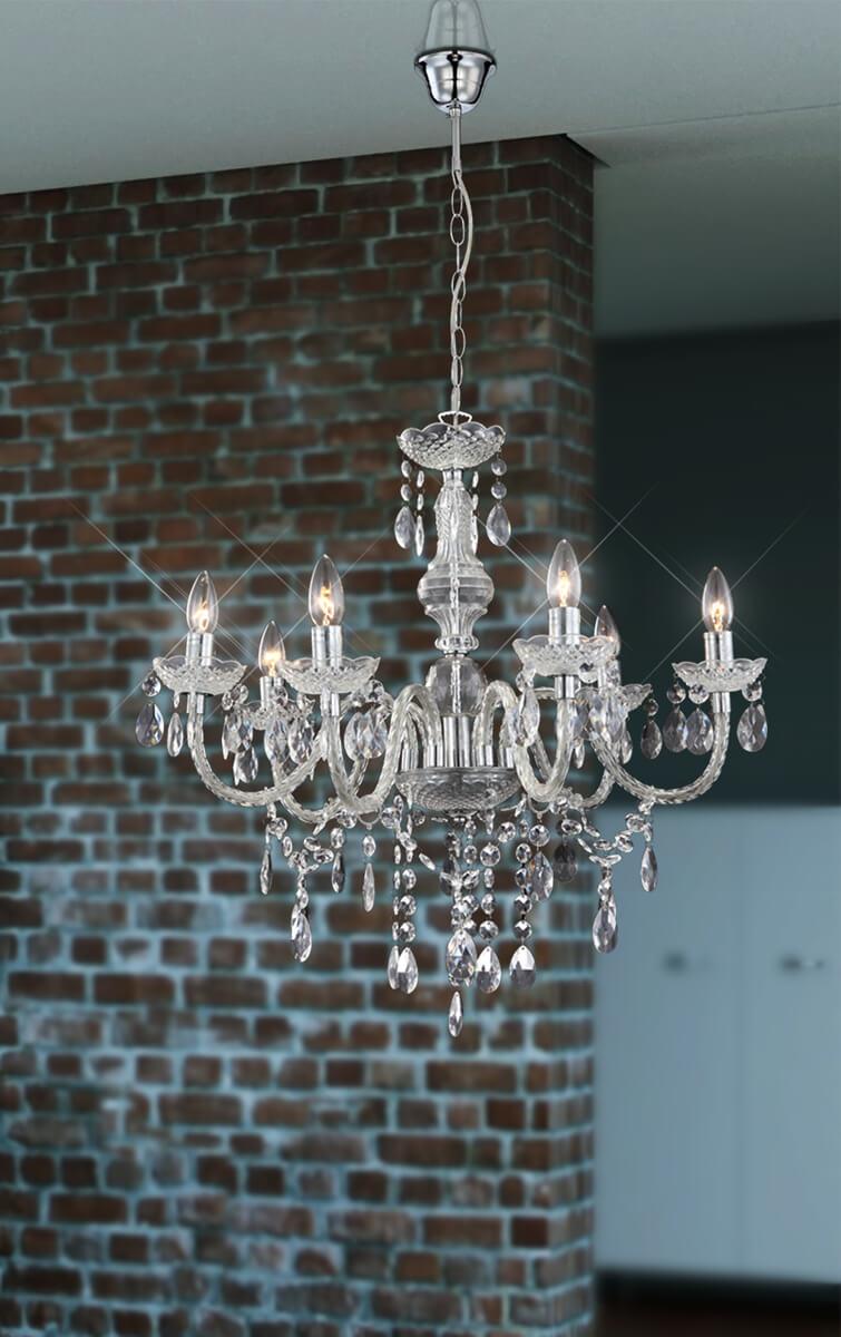- Комментарий: в новую квартиру надо было новую люстру. искали вместе с помощником из компании. люстр у них очень много. остановился на этой из австрии. 6 ламп светодиод как свечки, под ними как чашечки хрустальные, висюльки, каркас из металла. красиво. качество хорошее. сервис достойный. курьер аккуратный ничего не поломалось.