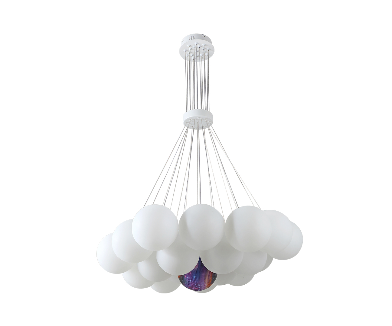 Люстра Алди белый d75 h130 E27 19*5W (в комплекте 19 белых и 1 цветной плафон)