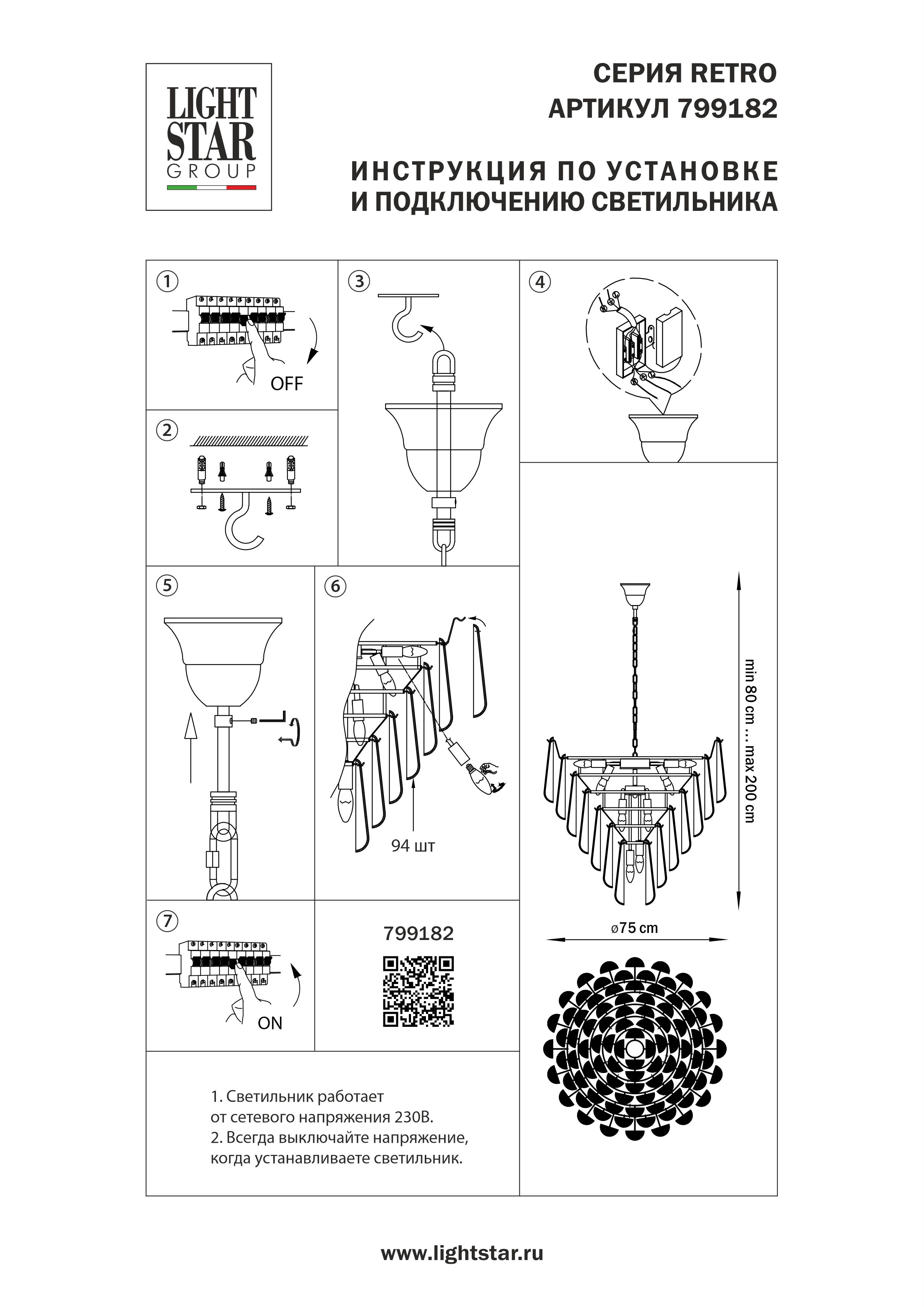 Подвесная люстра Lightstar Retro II 799182 в Ялте