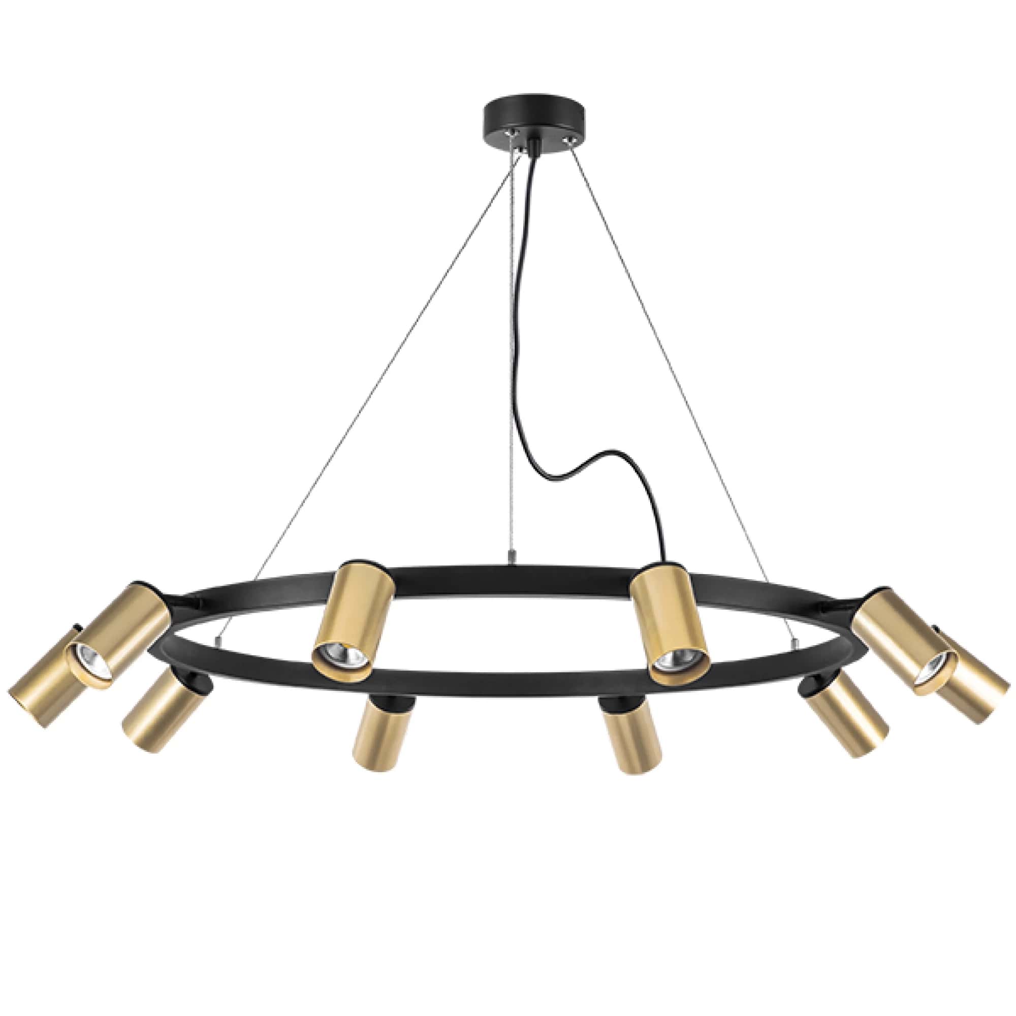 Привлекательная модель LR020400 от итальянского производителя Lightstar коллекции Rullo отлично подойдет для установки на потолок в стиле хай-тек , в светильнике используется 10 лампочек с цоколем GU10 , площадь освещения 25 кв.м. Люстра регулируется по высоте минимальная высота -550, максимальная 1250 . Материал арматуры -металл - черного цвета , материал плафонов акрил-металл золотистого цвета. Данную модель всегда можете купить в интернет-магазине 220svet.