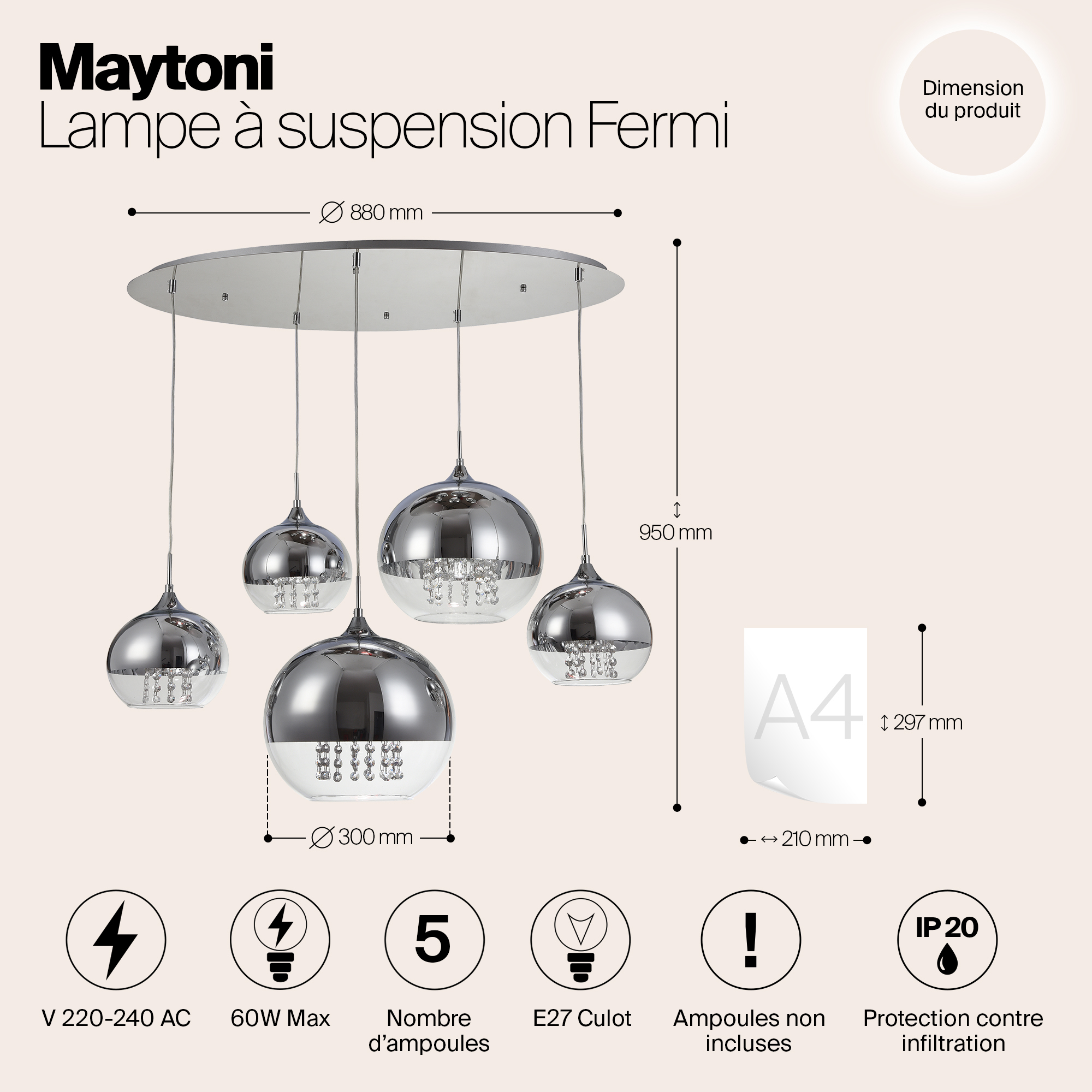 Подвесная люстра Maytoni Fermi P140-PL-170-5-N в Ялте