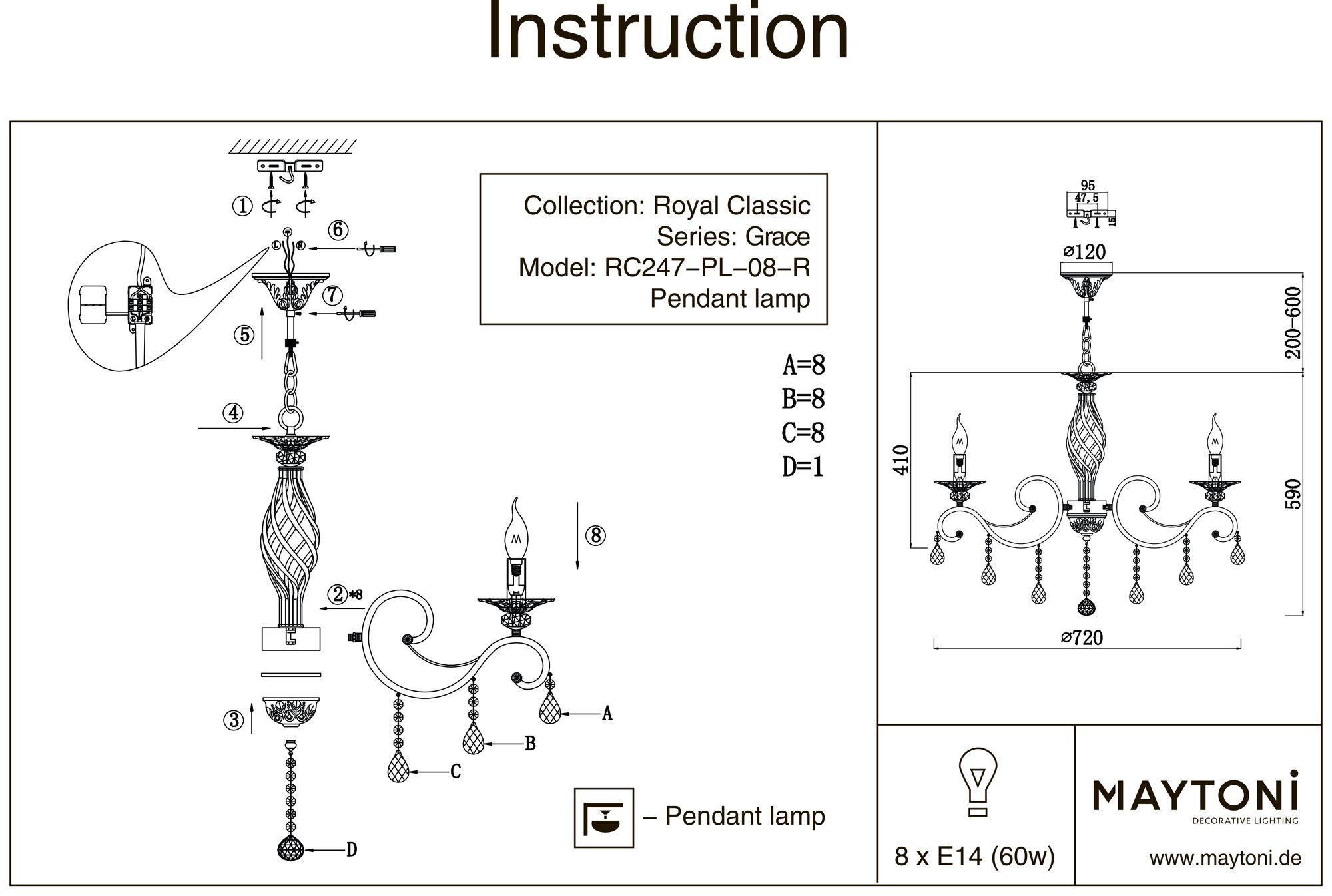 Купить "Подвесная люстра Maytoni Grace RC247-PL-08-R"