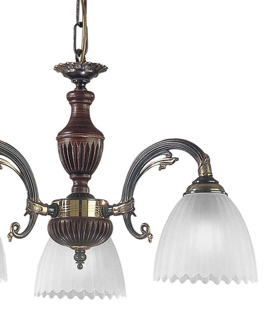 Подвесная люстра Reccagni Angelo L 3510/3 Итальянского производсва – уникальное сочетание высокого качества и удивительных фактур. Этот светильник Классического стиля хорошо подойдет Для спальни и придаст помещению мягкий и приятный свет. Плафоны белые из стекла. Арматура бронза из металла. Кол-во ламп - 3шт. Общая мощность 180W