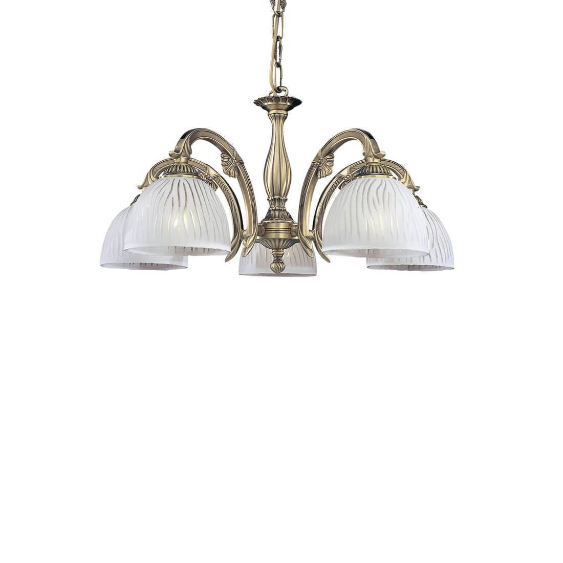 Подвесная люстра Reccagni Angelo L 5650/5 Итальянского производсва – уникальное сочетание высокого качества и удивительных фактур. Этот светильник Классического стиля хорошо подойдет Для гостиной и придаст помещению мягкий и приятный свет. Плафоны белые из стекла. Арматура бронза из металла. Кол-во ламп - 5шт. Общая мощность 300W