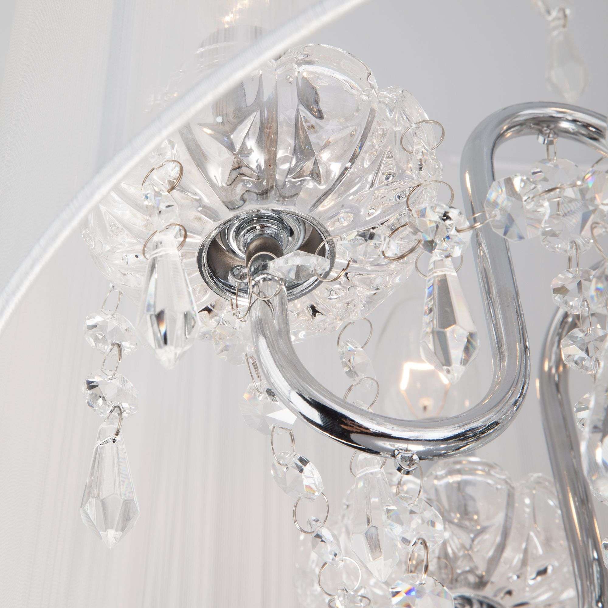 Люстра потолочная с абажуром и хрусталем 2045/5 хром/белый предназначена для создания основного освещения в современных и классических интерьерах, подходит для различных типов помещений: гостиная, спальня и рассчитана на площадь освещения 16м².