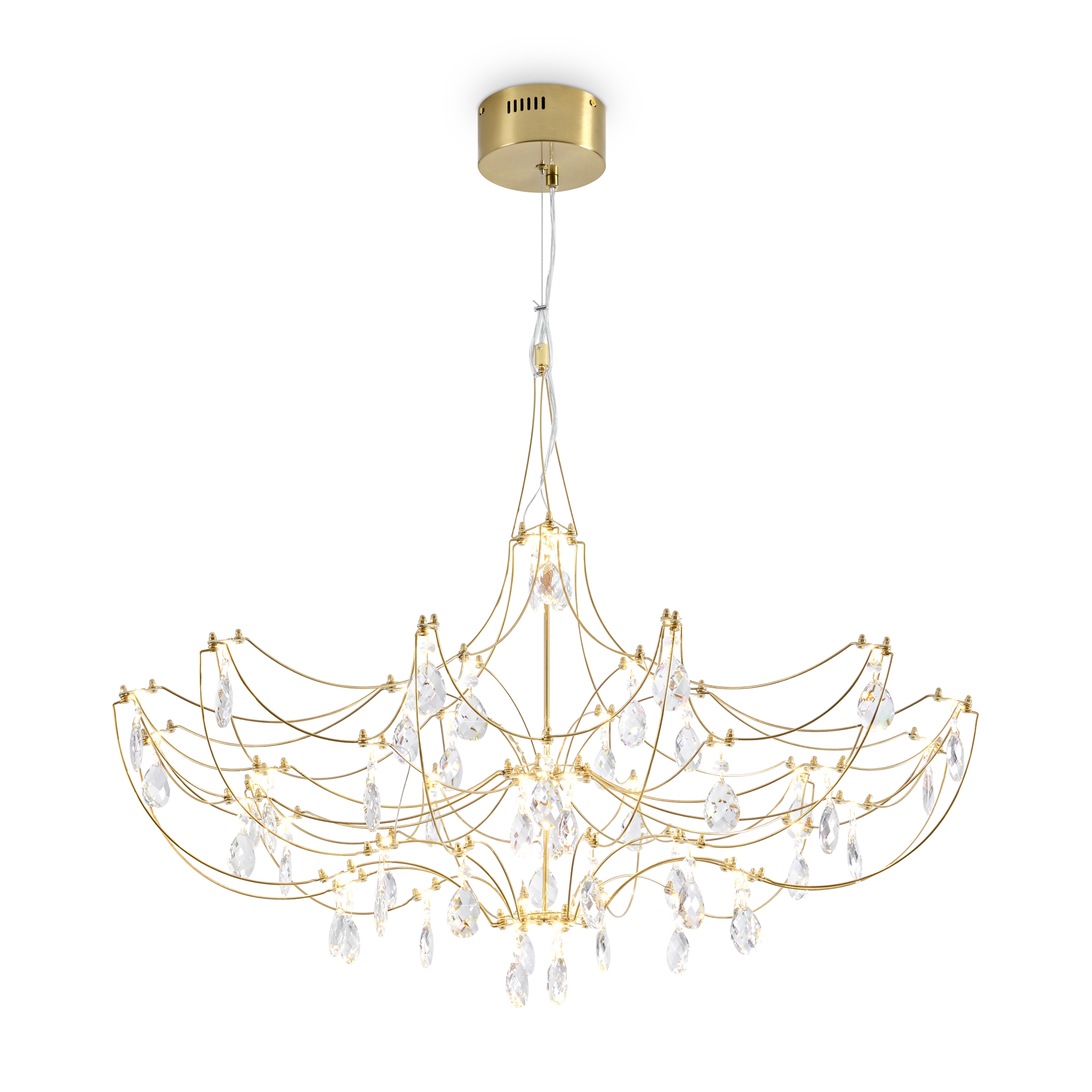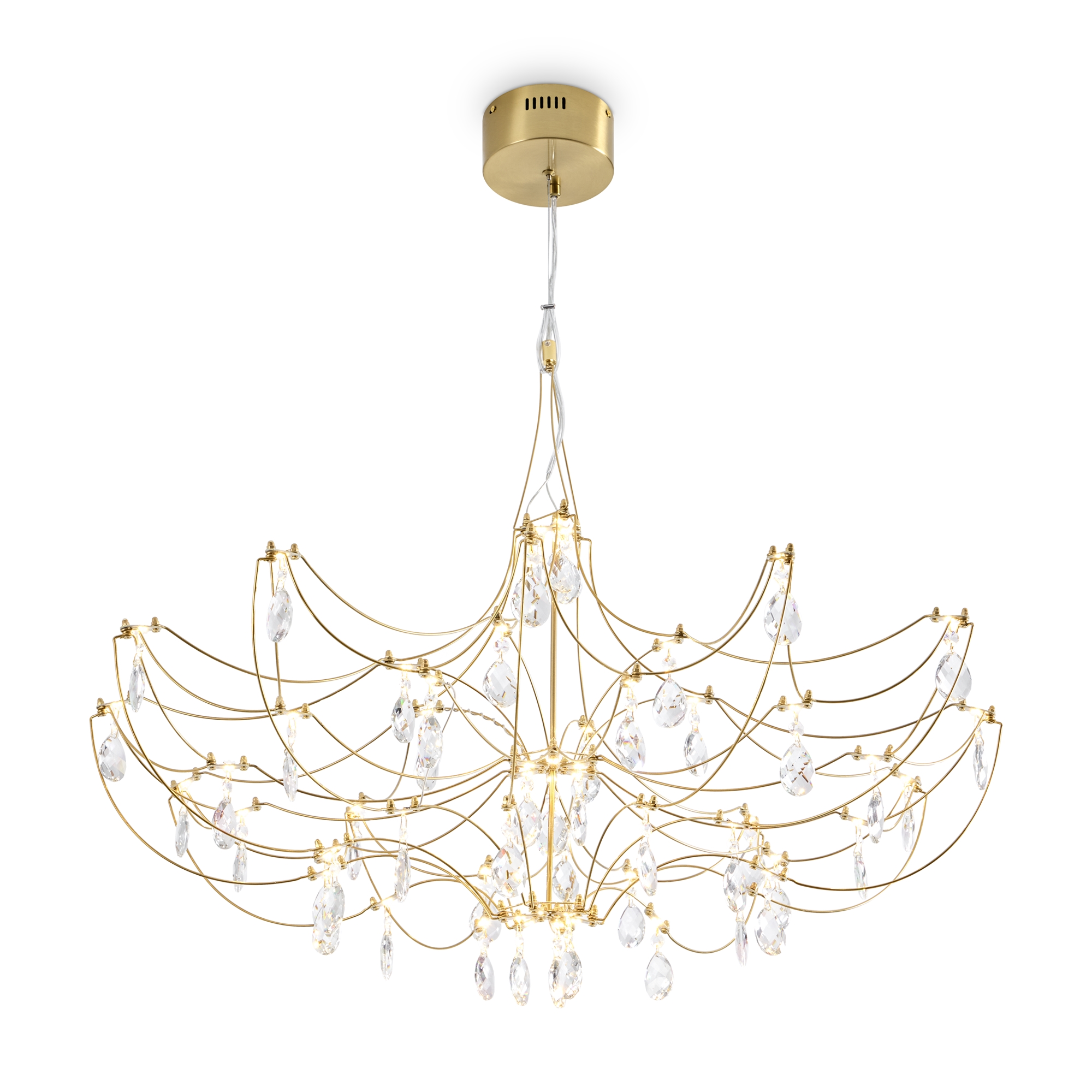 Арматура - хромированная нержавеющая сталь. В соединениях арматуры Led источник света и декоративные элементы из хрусталя в виде капелек. Цветовая температура 3000К.