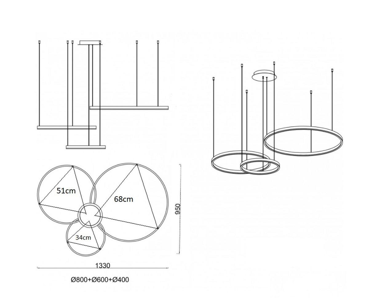 Люстра диммируемая Лаура латунь d40+60+80 h150 Led 110W (4000K) с пультом ДУ