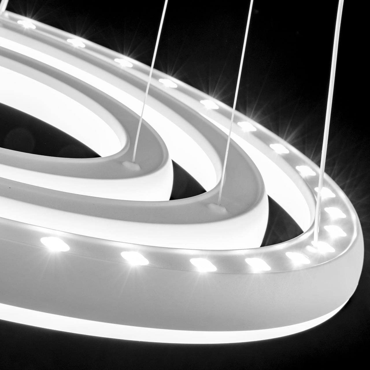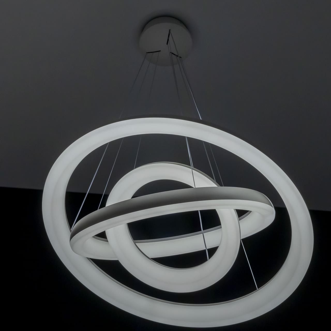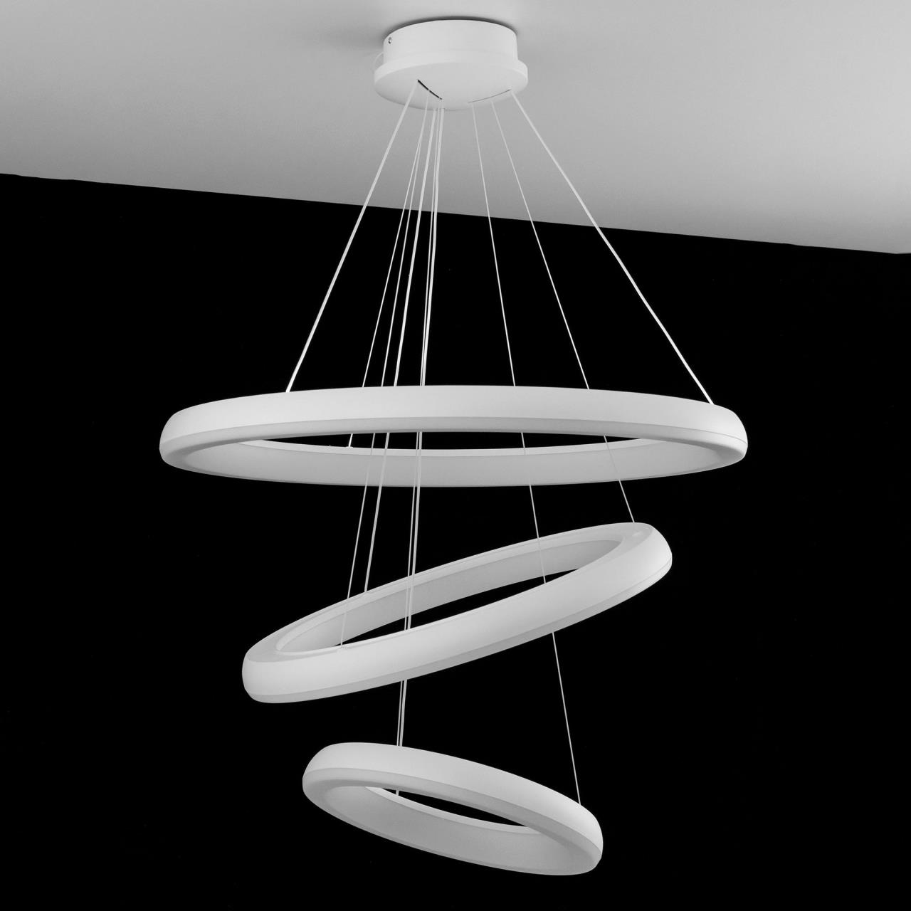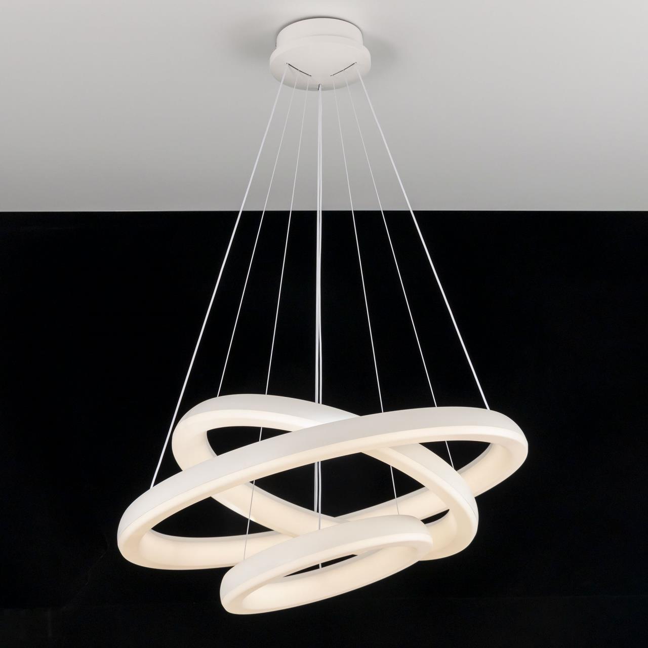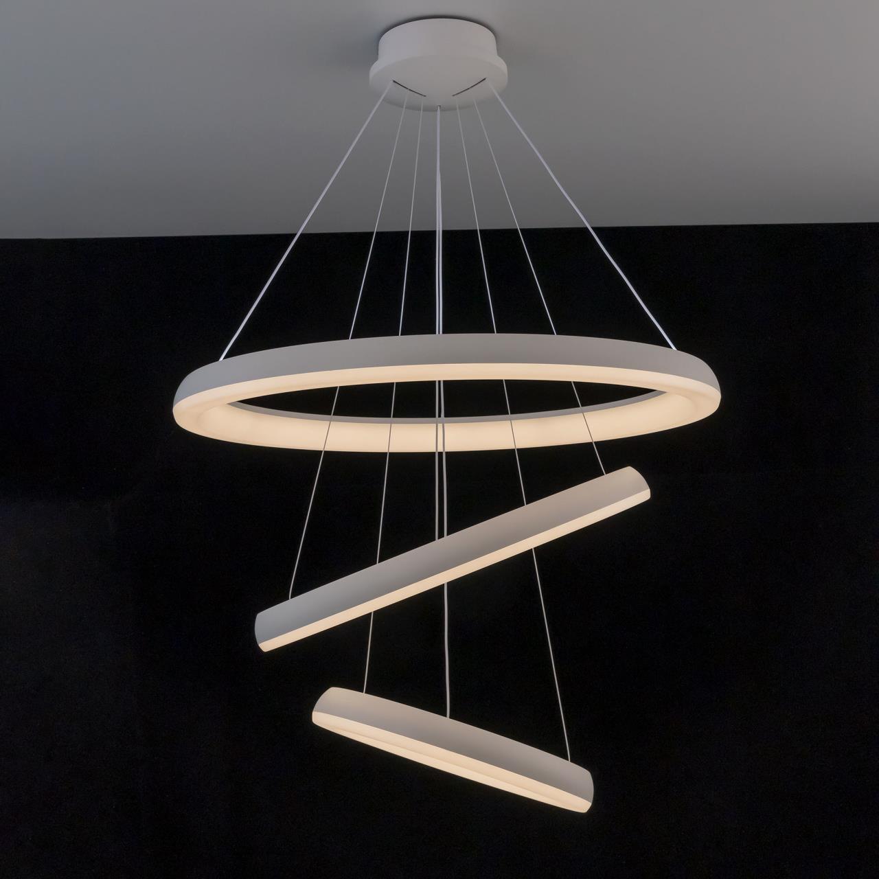 Подвесная светодиодная люстра CL730A150S от производителя Citilux относится к коллекции Юпитер Смарт с голосовым управлением, входит в экосистему Citilux SMART Светильником можно управлять: из приложения на смартфоне по Wi-Fi, при наличии интернета, с помощью голосовых помощников Алиса и Маруся, а также пультом дистанционного управления и настенным выключателем. Люстра на тросах в форме каскада из трех подвесных колец, высоту и угол наклона каждого из которых можно изменить. Корпус изготовлен из прочного полимера, рассеиватель оптический полимер, цвет белый матовый. Крепление люстры подходит для всех типов потолков, в том числе натяжных. Тип крепления – планка. Суммарная мощность светильника 170Вт, световой поток 12500Лм. Модель оснащена модулем потолочного света мощностью 30Вт, который создает уникально равномерное освещение без мерцаний и пульсаций во всем помещении и может включатся отдельно или совместно с основным светом. Диапазон регулировок цветовой температуры от 3000К до 5500К, с возможностью настроить любые оттенки теплого, нейтрального и холодного света , страна бренда Дания . Купить модель CL730A150S спешите в интернет магазине 220svet.ru