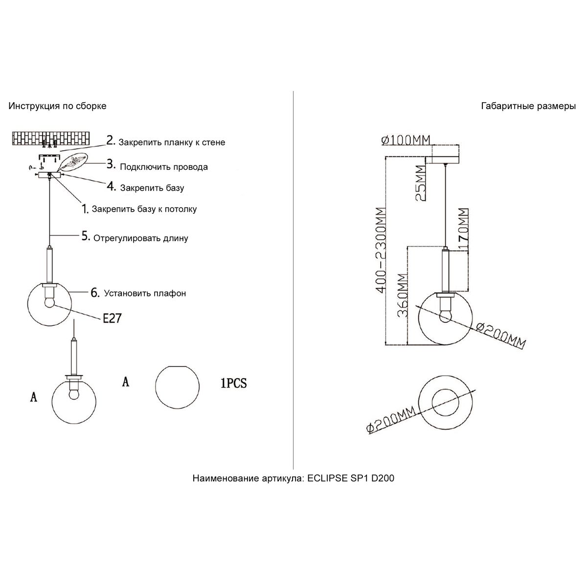 - Форма плафона: Шар
