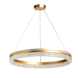 Металлическое основание подвесной люстры окрашено в черный цвет. Плафон люстры выполнен из сплава алюминия с цинком и гальванизирован в цвет графита. Светодиодный источник света закрыт матовым акрилом. Светильник декорирован пластинами из прозрачного текстурного акрила