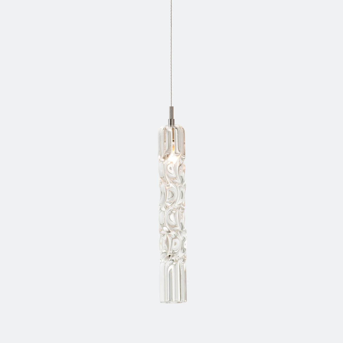 Подвесной светильник Delight Collection OWD272-1 gold с высоким узким плафоном с узорами на поверхности из прозрачного стекла. Диаметр плафона 4,7 см, высота 37 см. Металлические части золотого цвета.