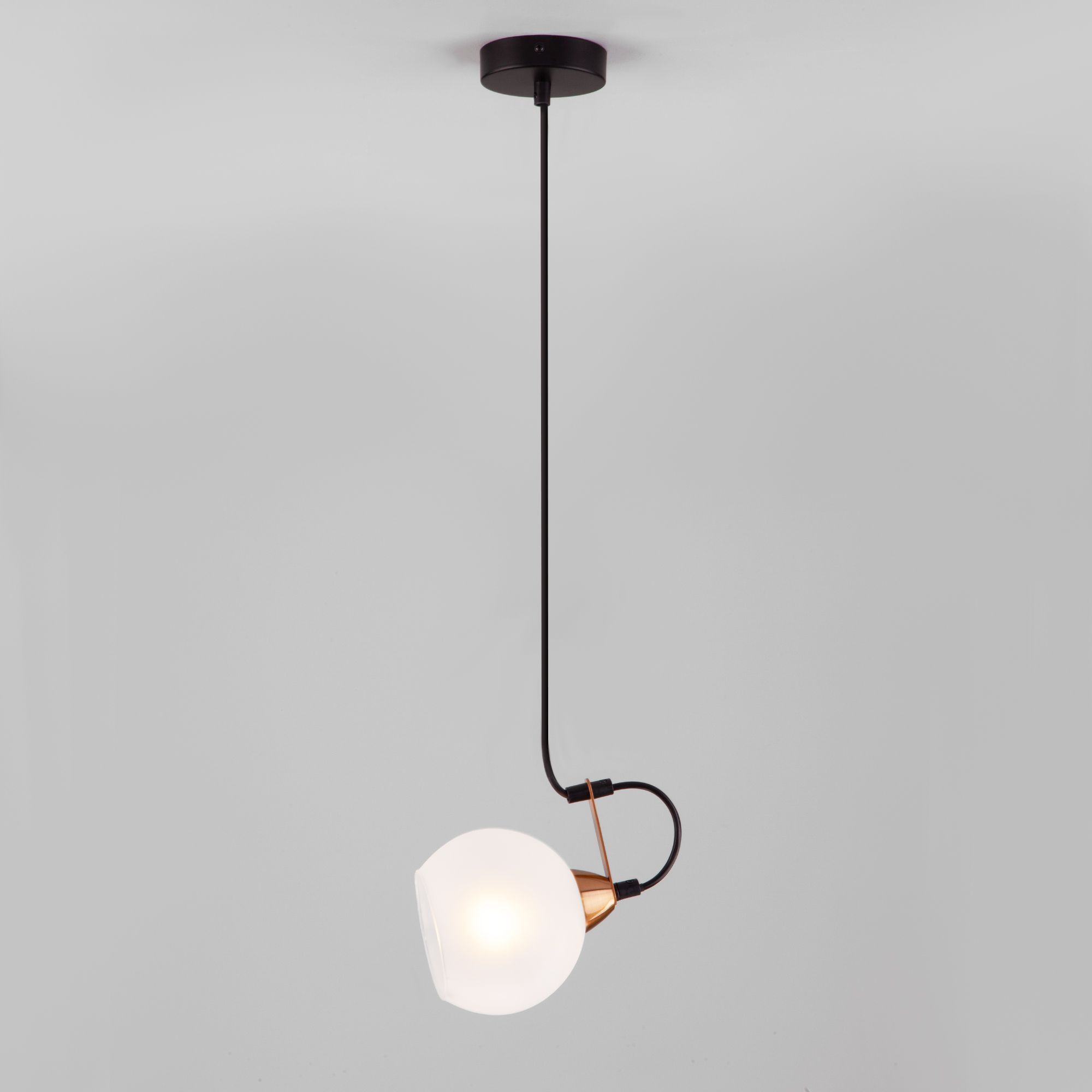 Светильник со стеклянным плафоном оснащен системой регулировки высоты подвеса, позволяющей размещать изделие на разных уровнях, уменьшая или увеличивая угол рассеивания светового потока. Данный светильник легко устанавливается на потолке при помощи монтажной планки.