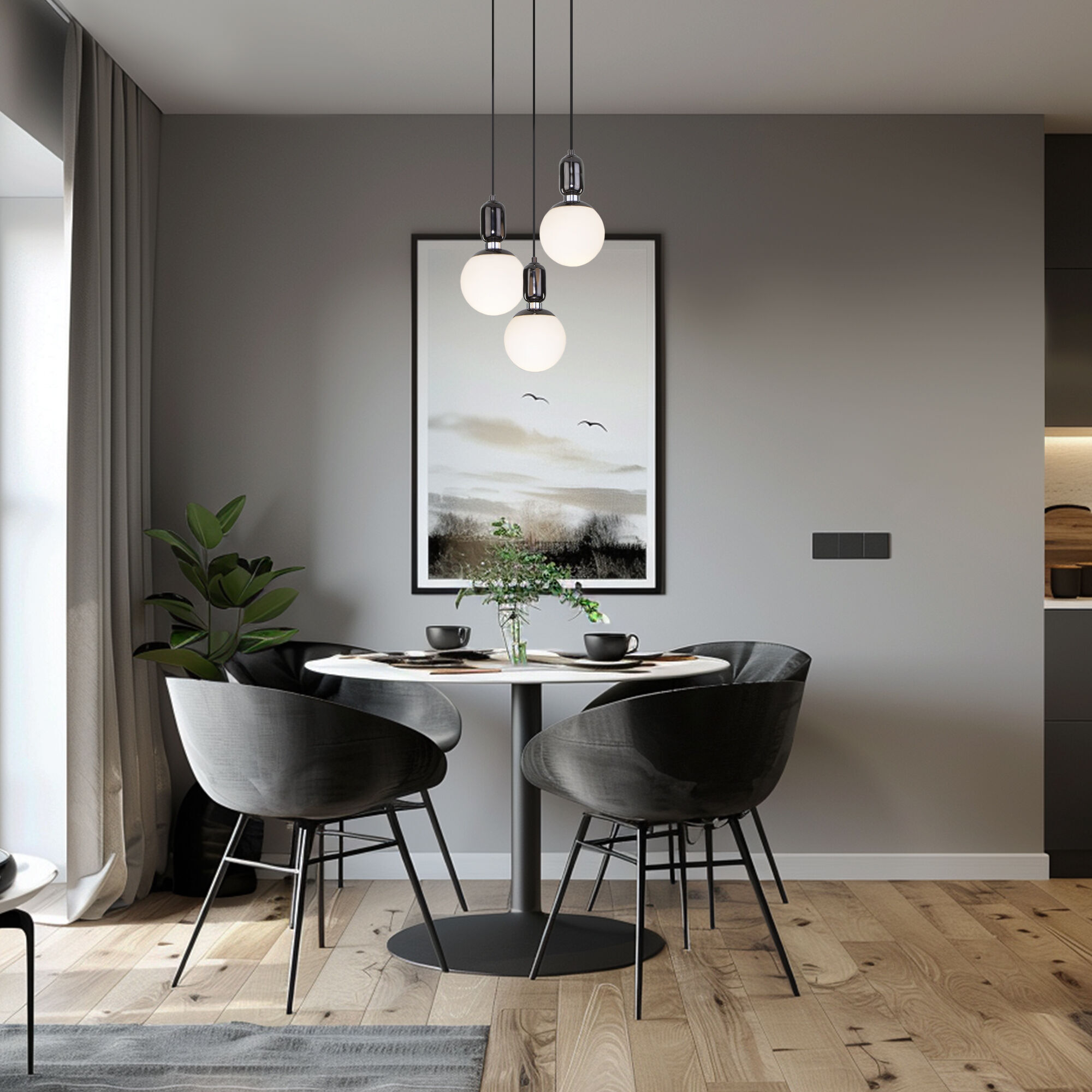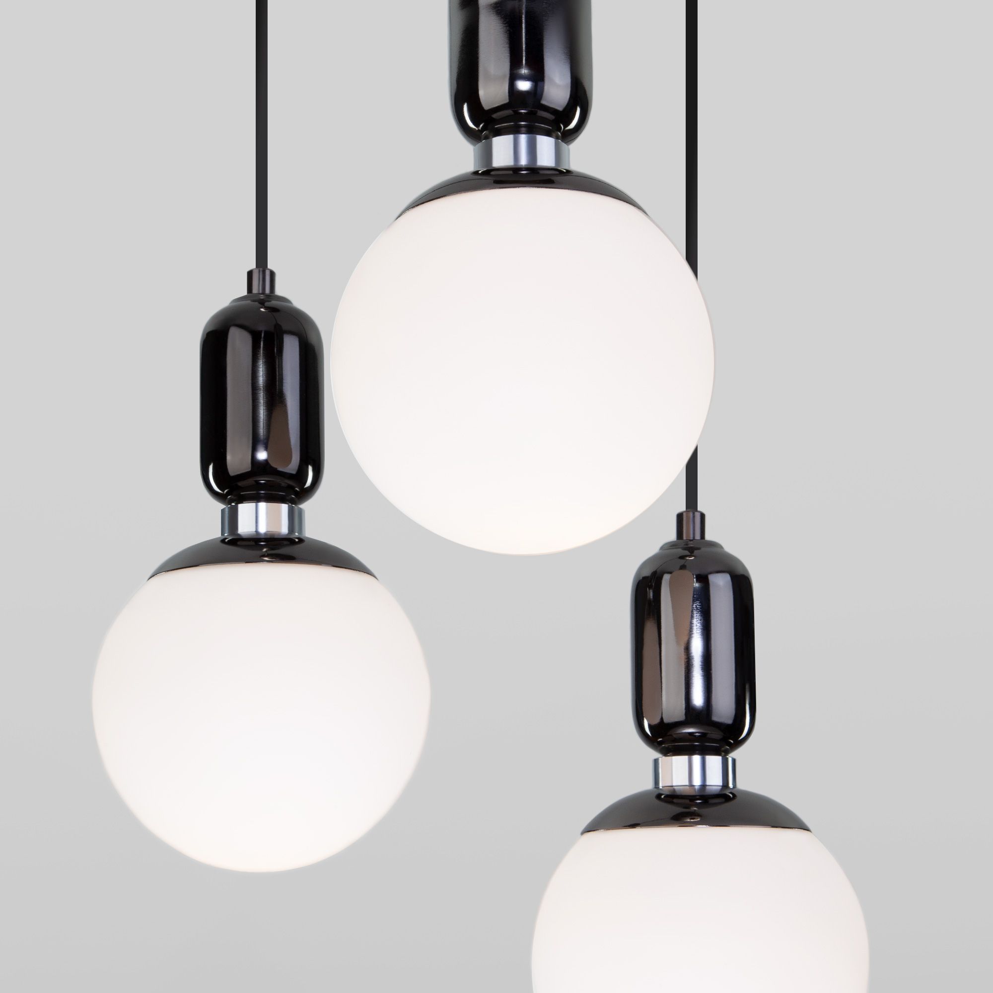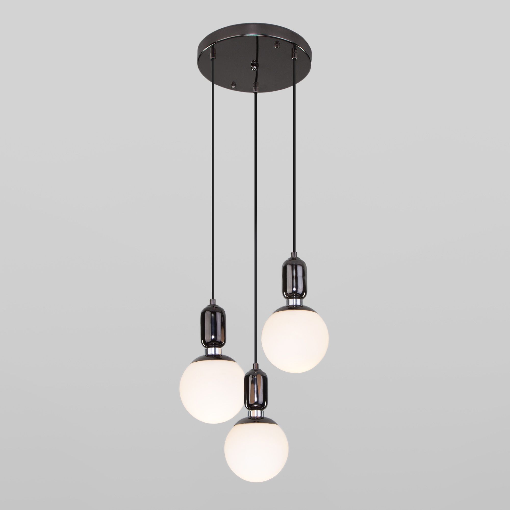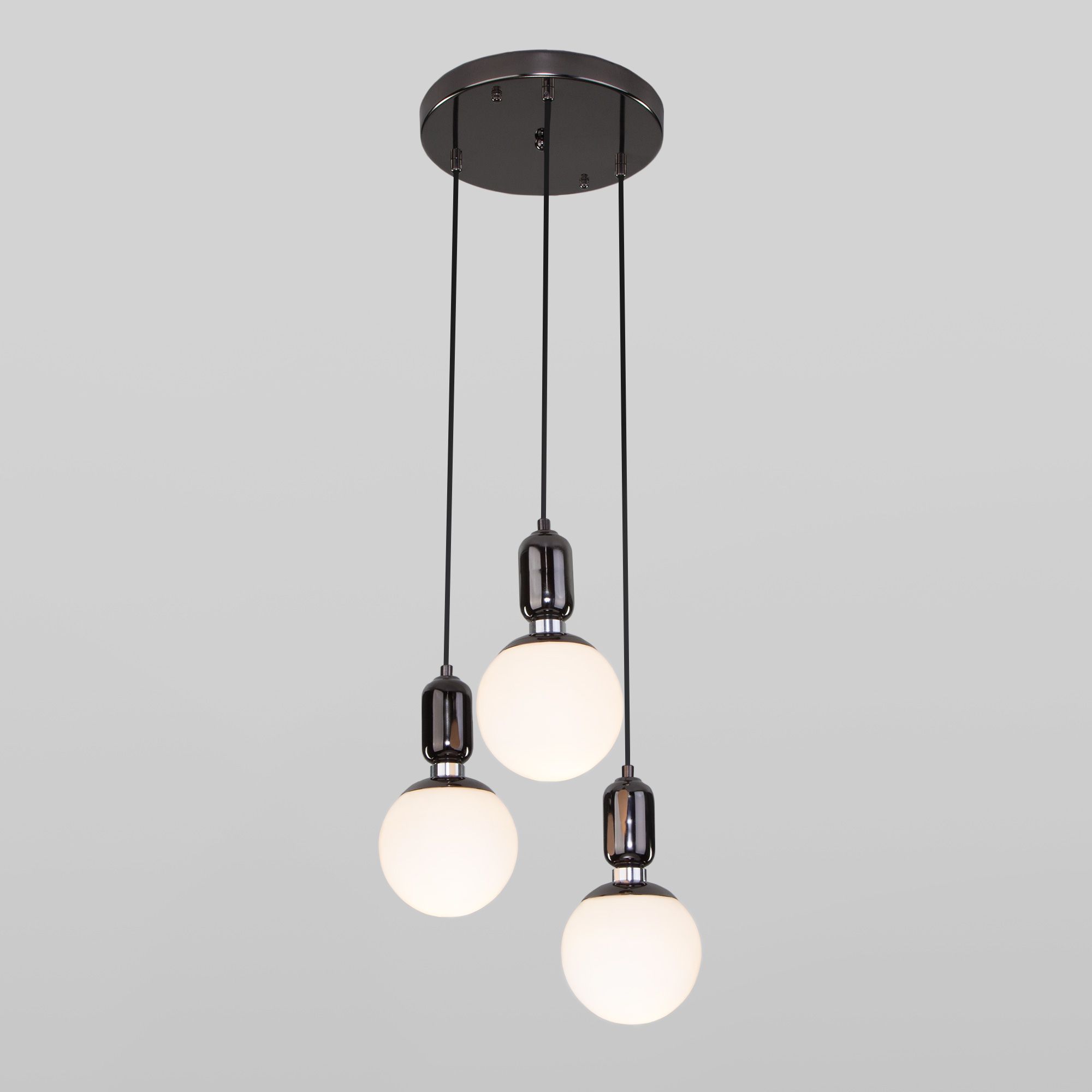 Подвесной светильник со стеклянными плафонами 50151/3 черный жемчуг предназначен для создания дополнительного освещения и акцентной подсветки в современных интерьерах. Светильник со сменной лампой E27 создаст качественное освещение на площади 6 кв.м. и подсветит рабочие зоны на кухне, в гостиной, в офисе и других местах.