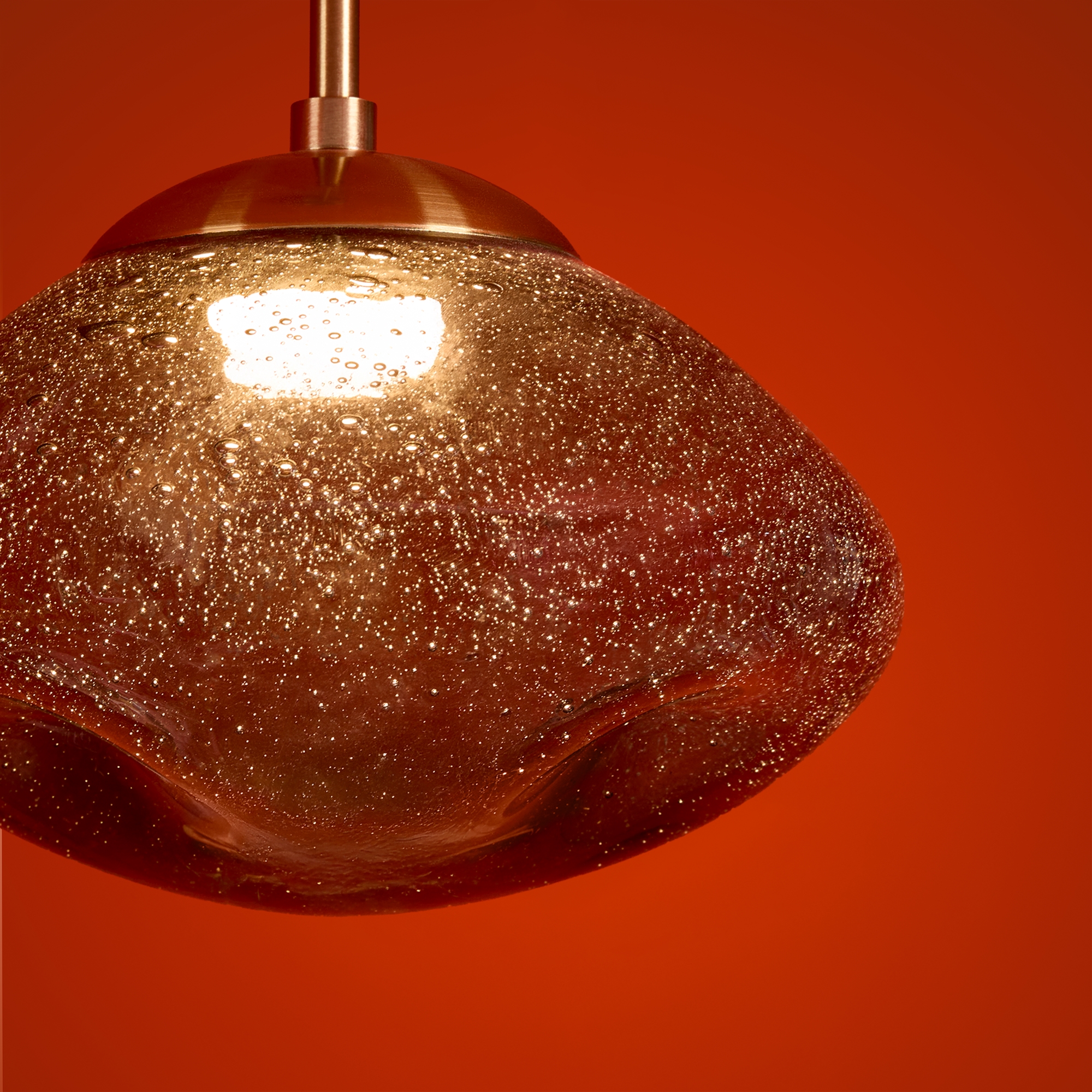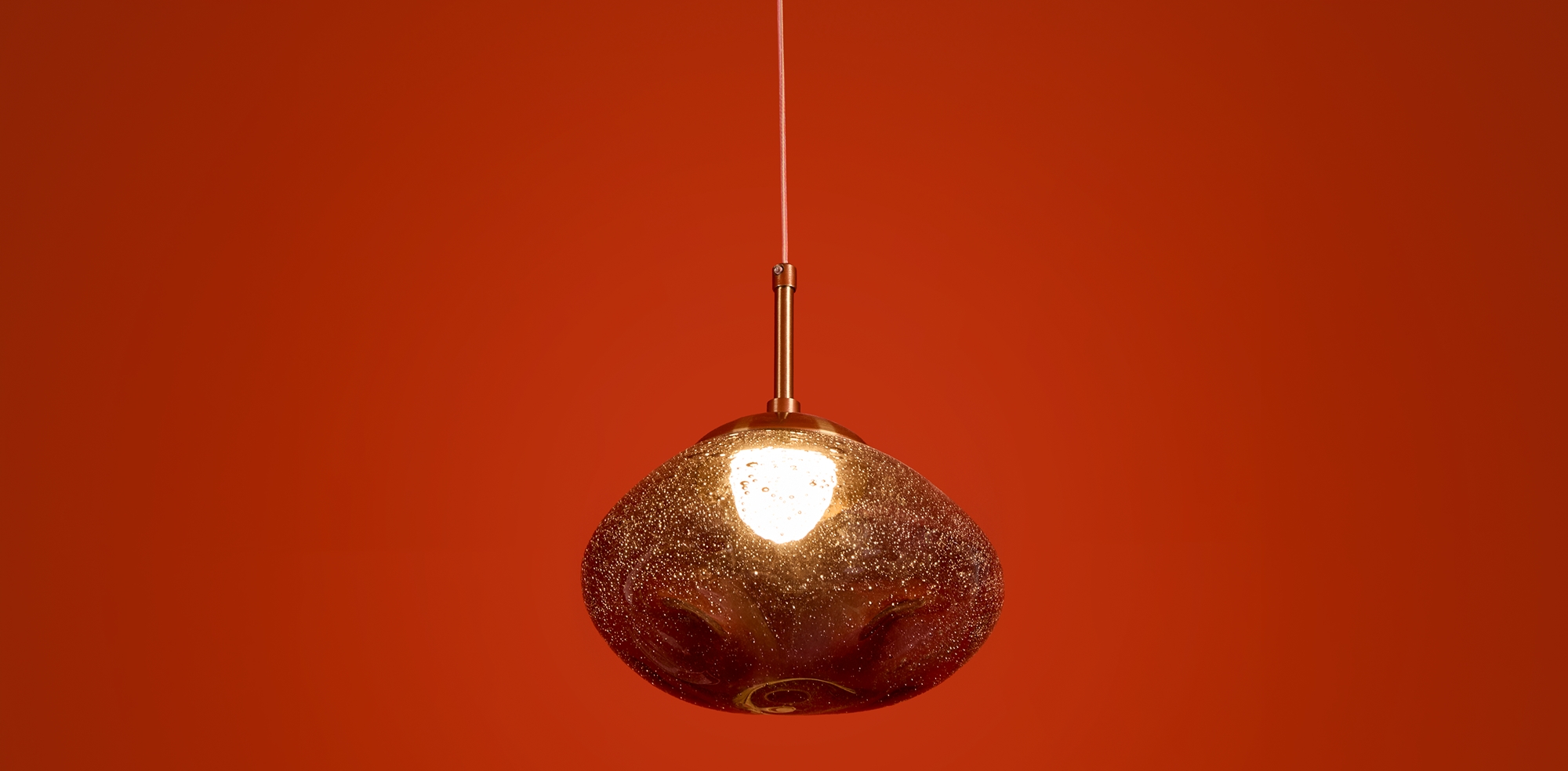 Арматура — металл. Стеклянные плафоны с пузырьками в трёх цветах: дымчатый, прозрачный, янтарный. Интегрированный LED источник света 3000К, Ra 80, угол 180°. Высота регулируется.