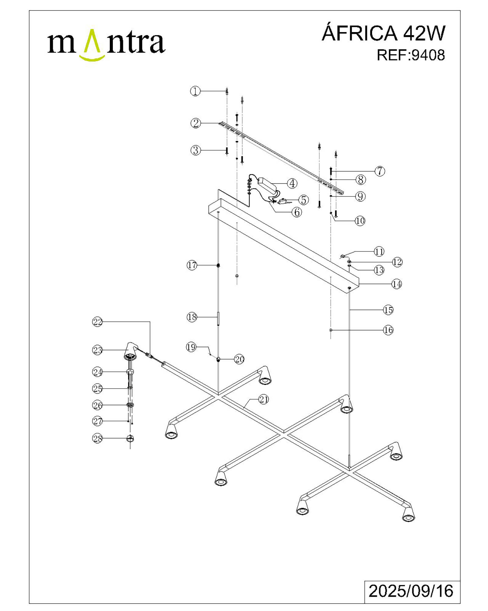 Подвесной светильник Mantra Africa 9408 в Ялте