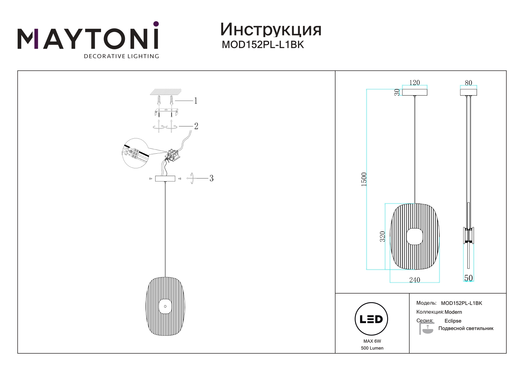Данную модель MOD152PL-L1BK с быстрой доставкой спешите купить по цене 19 600 ₽ в магазине 220svet.ru