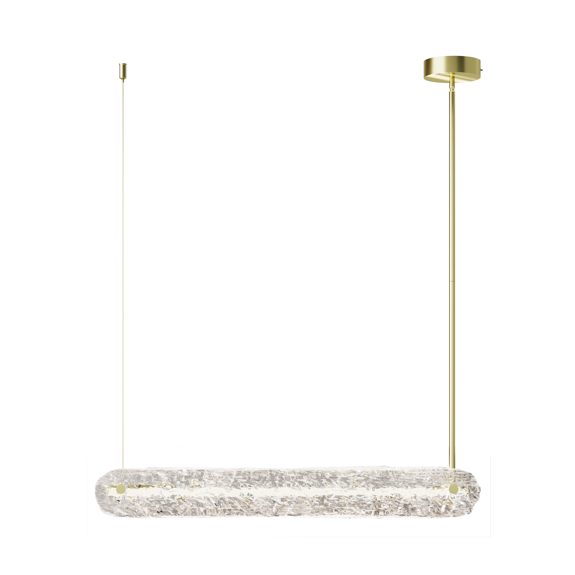 Серия Frostum включает горизонтальные подвесные светильники и настенные бра двух размеров. Плафоны из рельефного фактурного стекла ручной работы (каждый уникален). Арматура: металл цвета сатинированной латуни. Встроенный LED-источник с переключателем цветовой температуры (2700K-3000K-4000K). Угол рассеивания 120°, высокий индекс цветопередачи CRI 90. Высота подвесного светильника регулируется разборной штангой до 3000мм. Для создания акцентного освещения в классических и современных интерьерах.