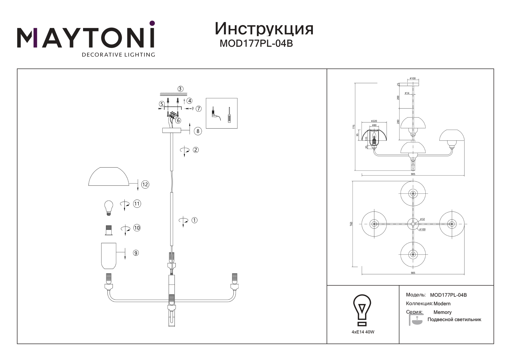 Купить "Подвесной светильник Maytoni Memory MOD177PL-04B"