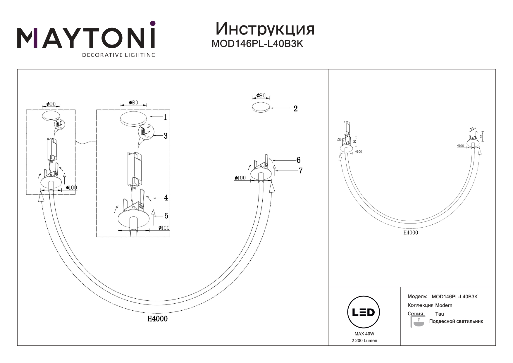 Данную модель MOD146PL-L40B3K с быстрой доставкой спешите купить по цене 34 490 ₽ в магазине 220svet.ru